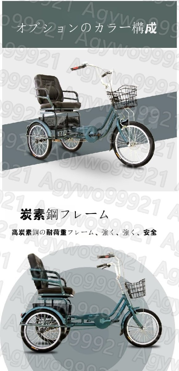 大人用三輪車 自転車アシスタント ビーチクルーザー シニア用 女性用 3輪 男女兼用 16インチ シートは前後に調整可能