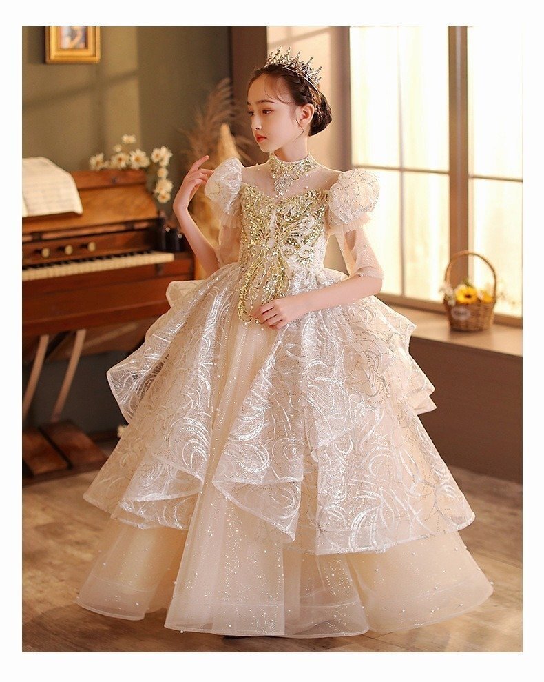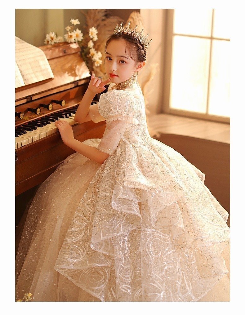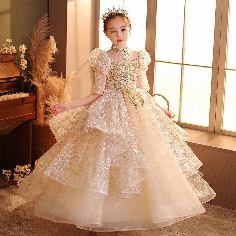 新品 子供ドレスピアノ発表会ロング子どもドレスフォーマル七五三ドレス 演奏会 発表会 パーティードレス キラキラ 高級