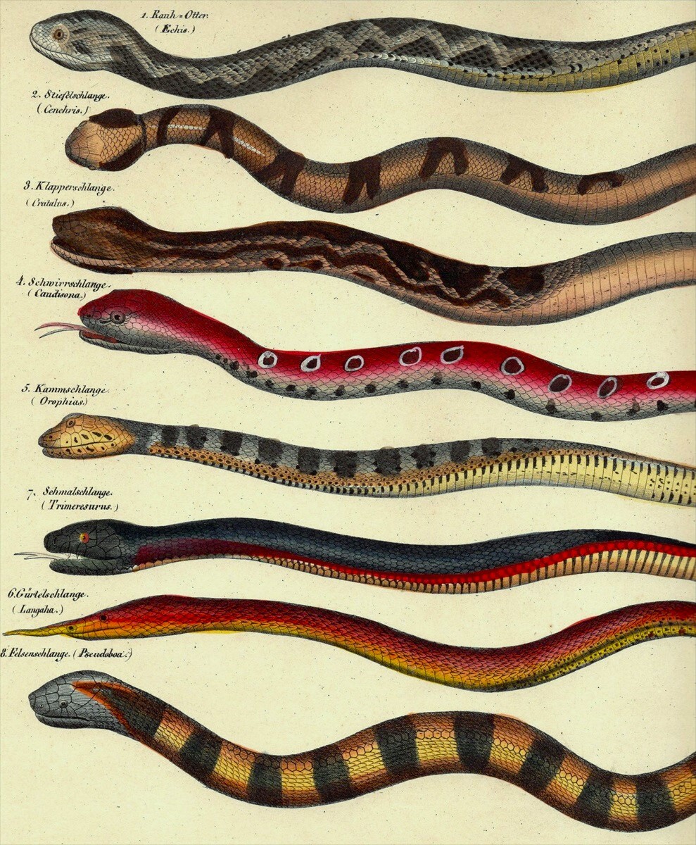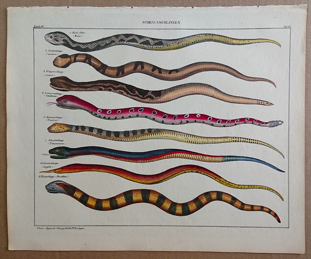 1843年 Oken 博物図鑑 手彩色 鋼版画 大判 イースタンカッパーヘッド シンリンガラガラヘビ ヒメガラガラ 博物画