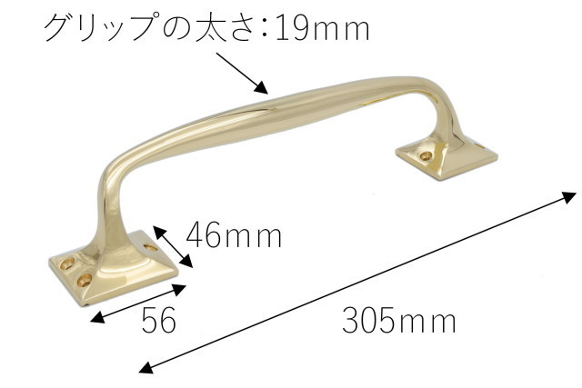 サイズ | W*約305mm、D*約68mm、ハンドル部分長さ*約255mm 取付け部分*約46mmX56mm、重さ*約805g(真鍮ネジ付き) |