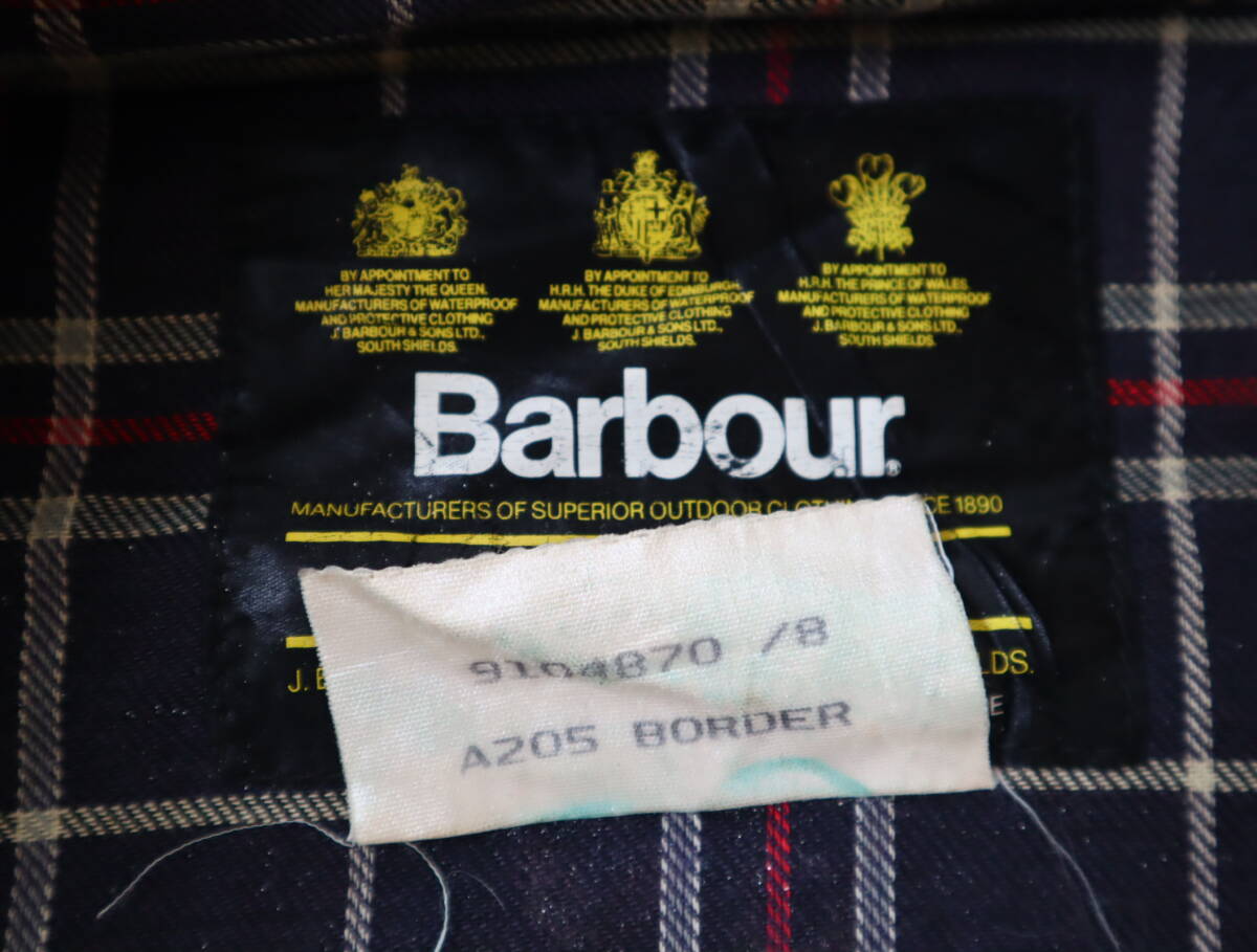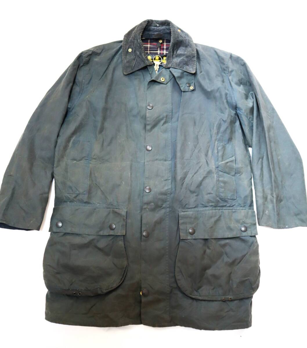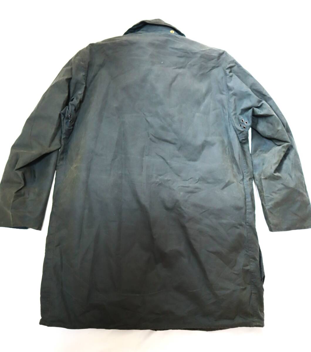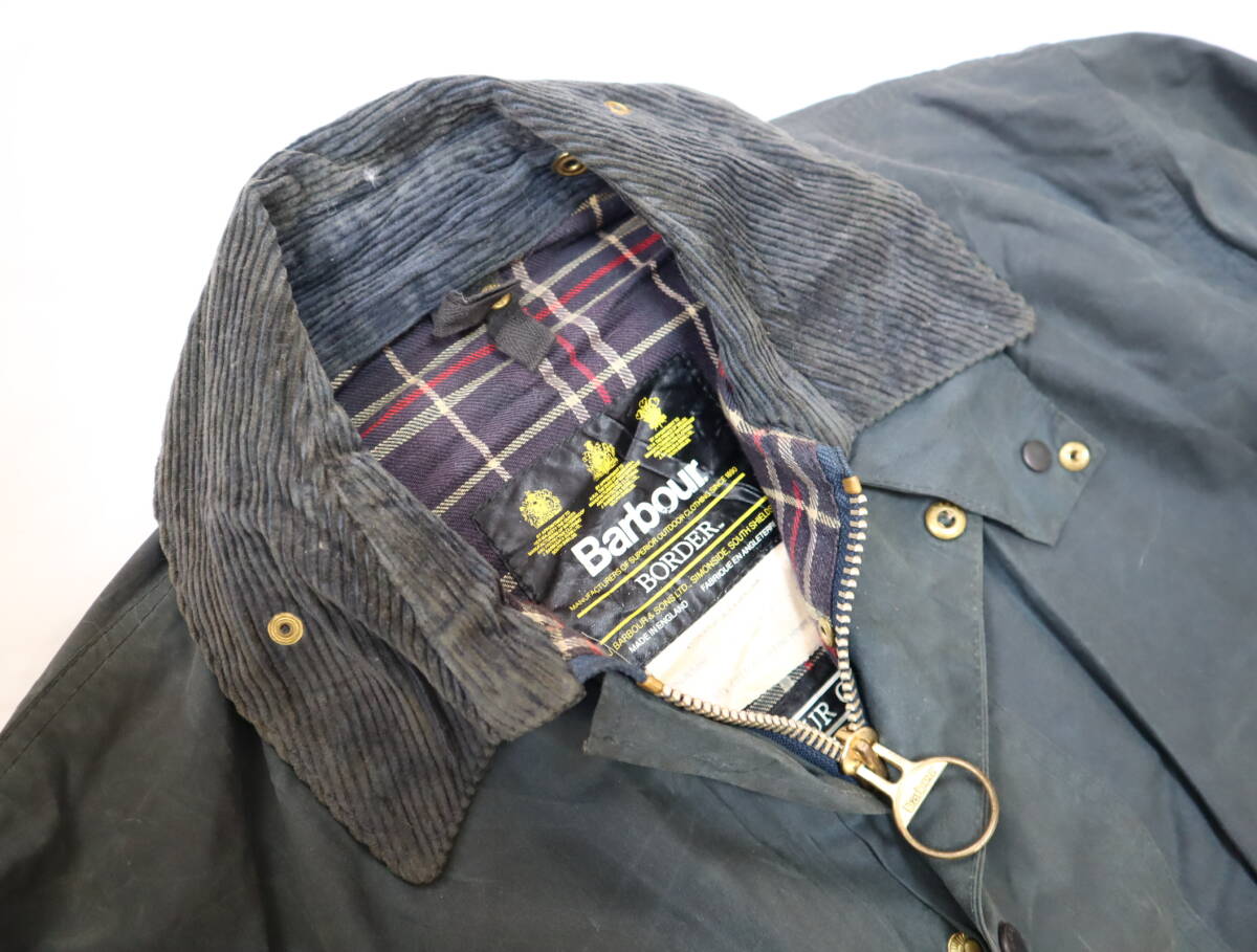 91年 3ワラント ビンテージ バブアー Barbour BORDER ボーダー ミディアムウエイト オイルドジャケット ロングコート ネイビー 40
