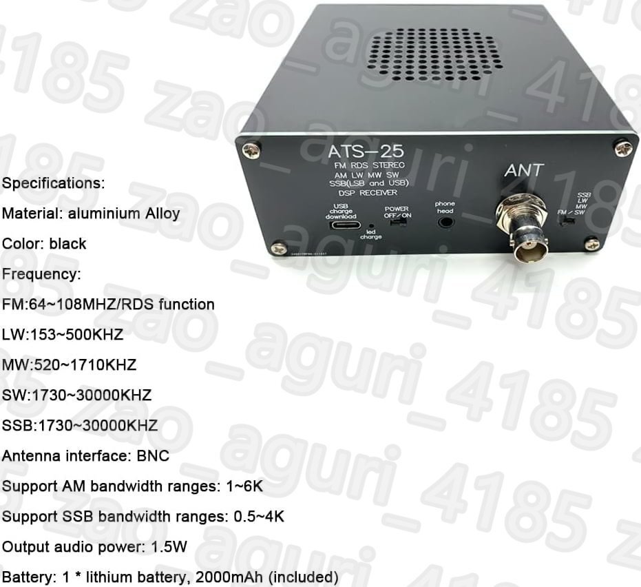 FM&AMモード: FM AMモードを受信するには、この受信機には短波用の専用アクティブアンテナが必要で、範囲は0~30MHzです。