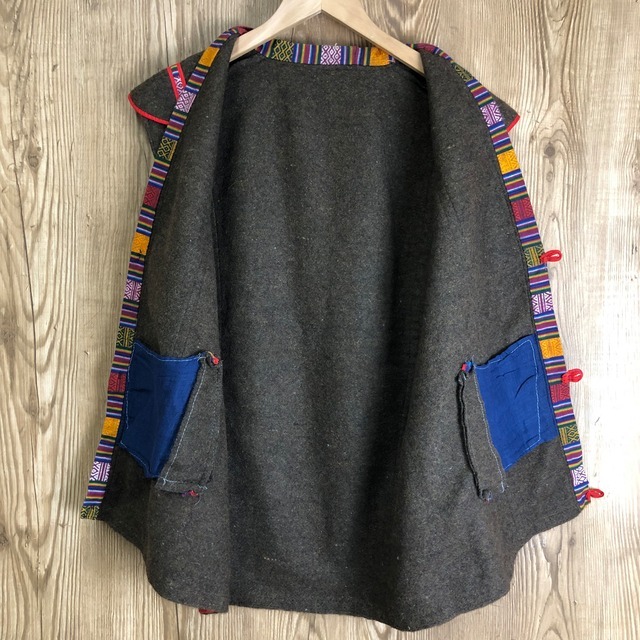 VINTAGE ウールベスト KULLU インド メンズSサイズ位 ハンドメイド ビンテージ ヴィンテージ 古着 e24040208
