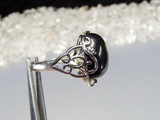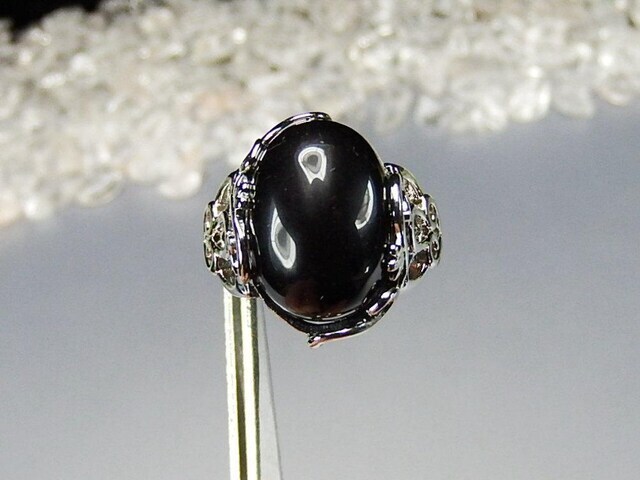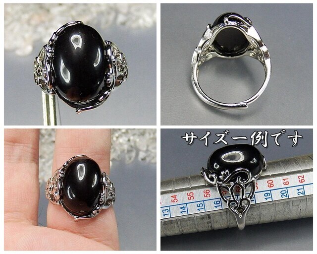 AAAオブシディアン大粒指輪 石サイズ約16x12mm