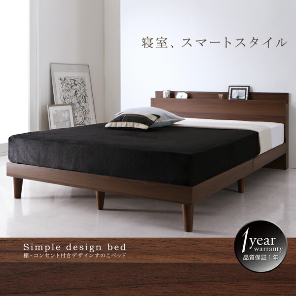 組立設置付き 棚・コンセント付きデザインすのこベッド Reister レイスター ベッドフレームのみ ダブル【フレームカラー:ウォルナットブラウン】です。