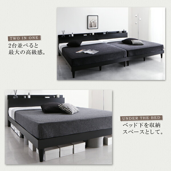 棚・コンセント付きデザインすのこベッド ベッドフレームのみ ダブル 組立設置付