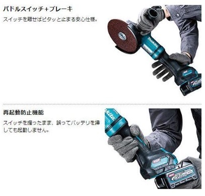 マキタ GA037GRMX 青 (バッテリ2個・充電器・ケース付) 180mm 充電式ディスクグラインダー パドルスイッチ 40V 4.0Ah 無線連動対応