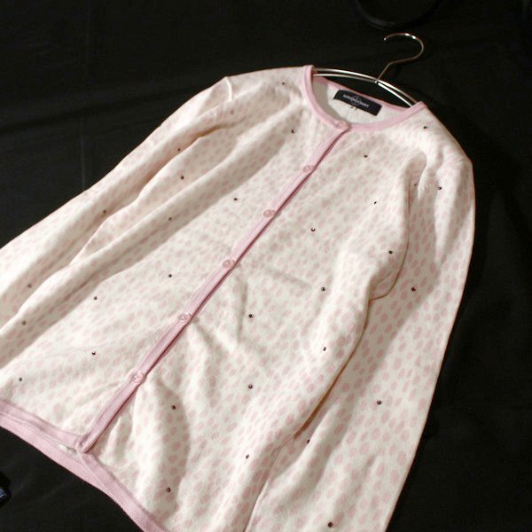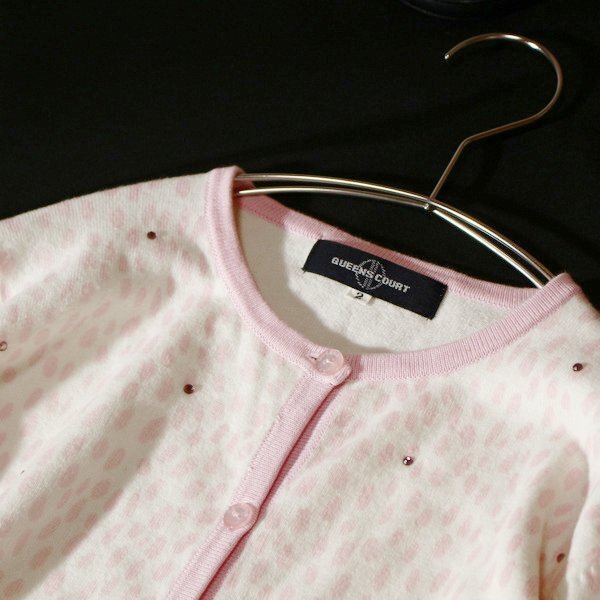 美品 QUEENS COURT クイーンズコート 可愛い ラインストーン付き コットン ニット カーディガン 2号 M 春 合服 24C04