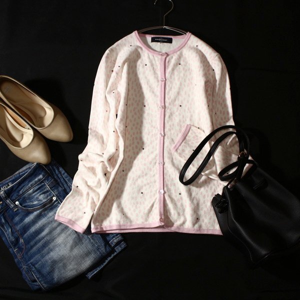 ラインストーンの付いた、可愛いコットンニットカーディガンです。