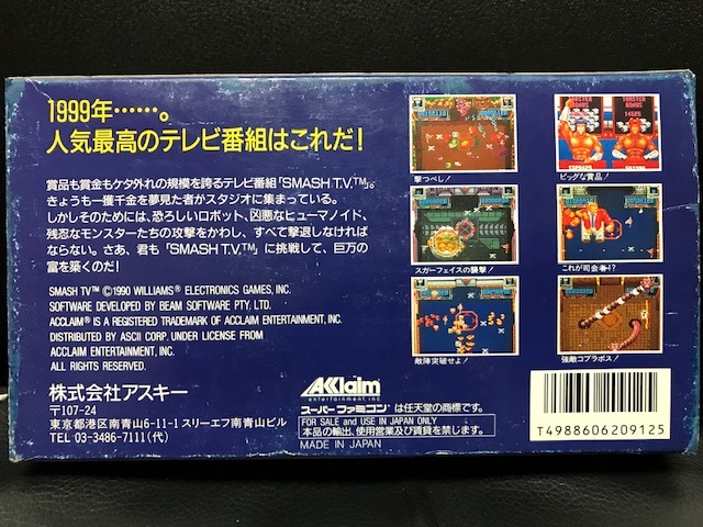 当時物 1992年 ASCII アスキー 日本製 SFCソフト SMASH T.V. スマッシュT.V. アクションシューティング スーパーファミコン レトロ 希少