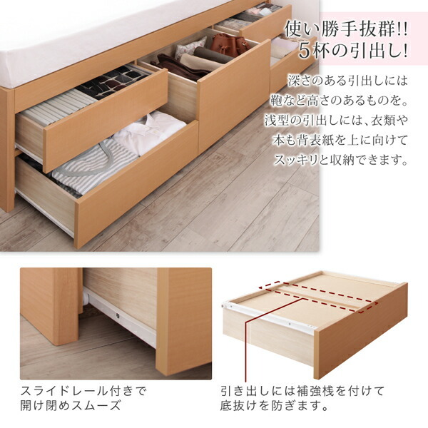 お客様組立 国産 清潔すのこ ヘッドレスチェストベッド ベッドフレームのみ セミダブル