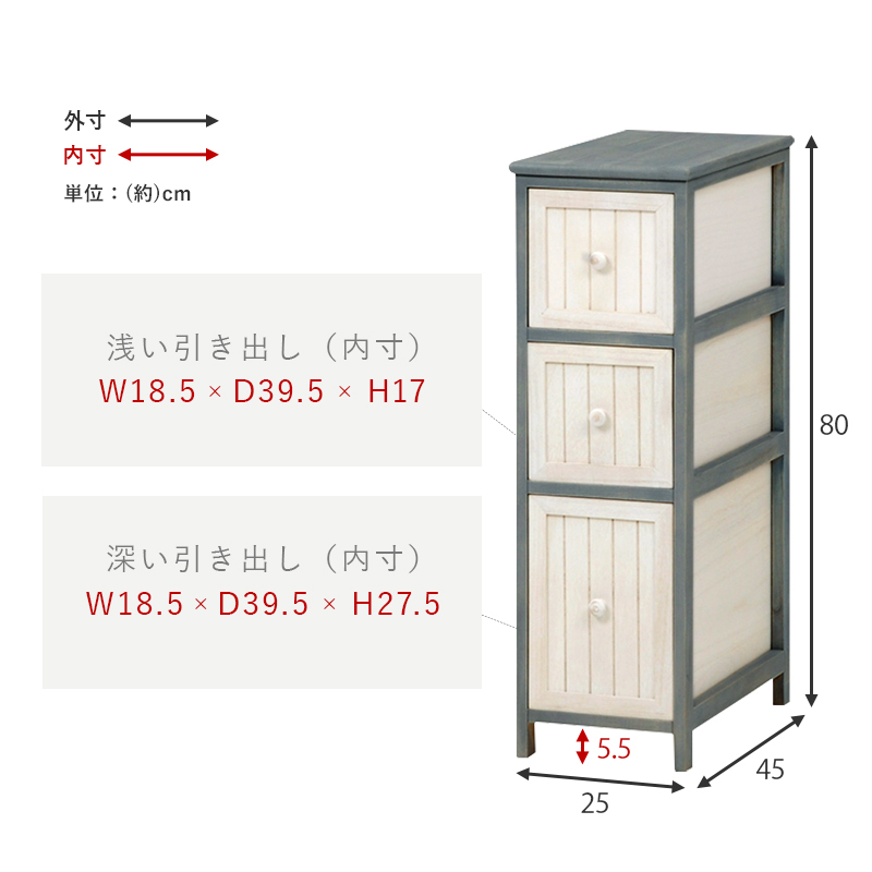■引出し内寸(小):(約)幅18.5×奥行39.5×高さ17cm