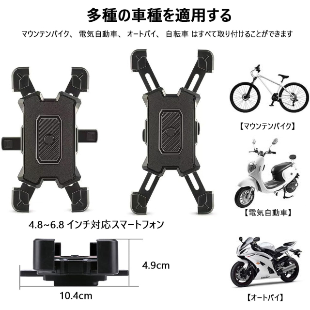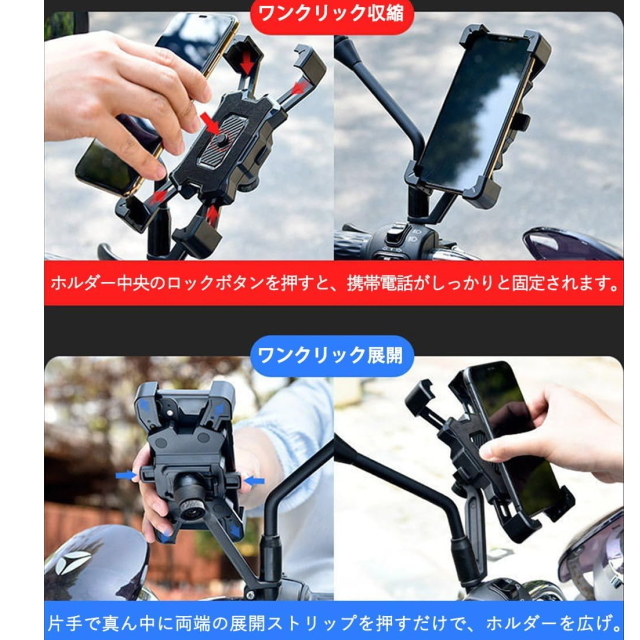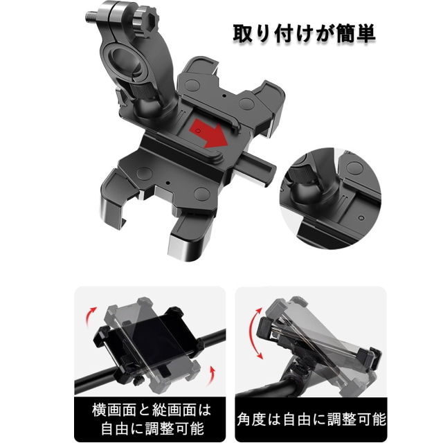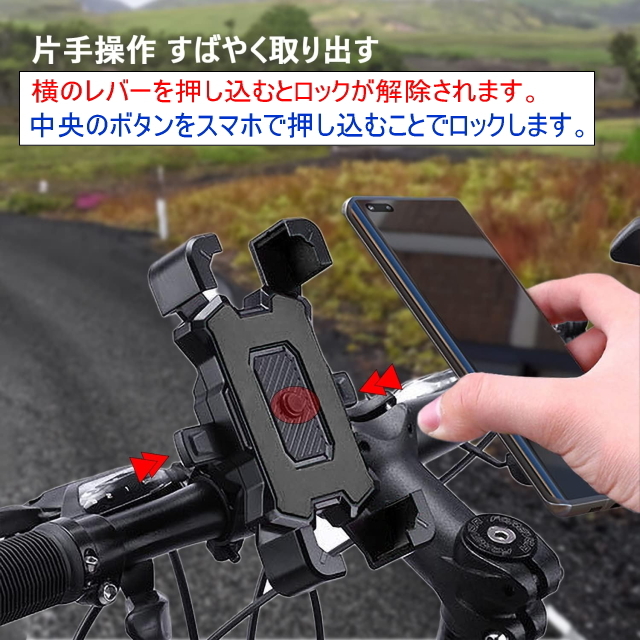 P自転車スマホ ホルダー バイクスマホ ホルダーしっかりと固定 1秒ワンタッチ固定式 振動に強く落下なし 360度回転 防振 脱落防止 角度調整