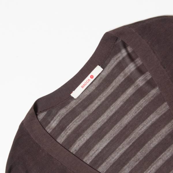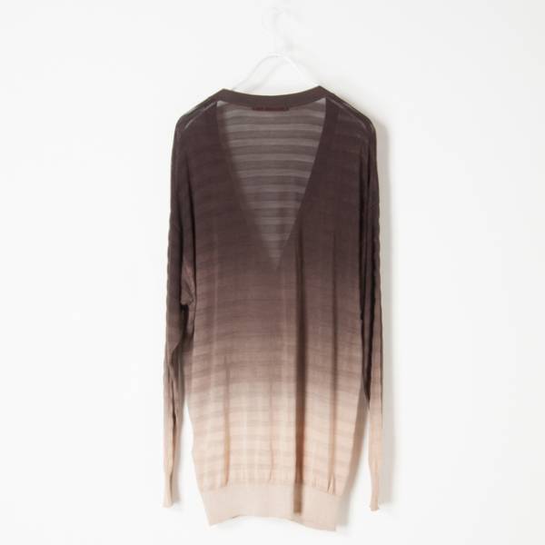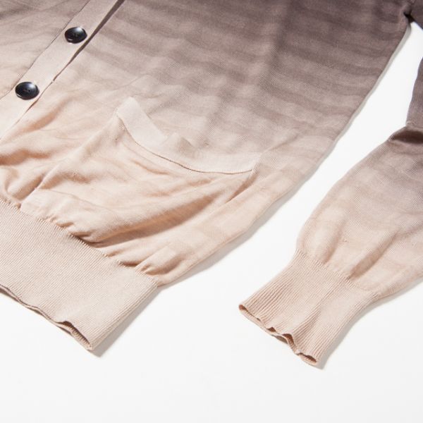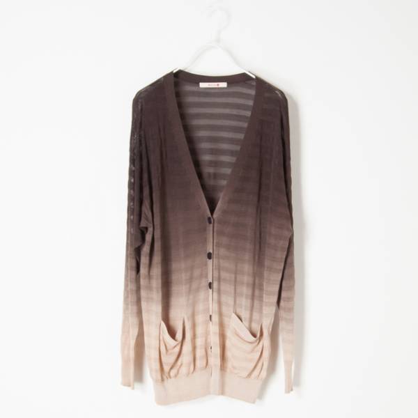バッカのシルクカーディガンです。肌触りも良く、色のグラデーションが魅力的です。着丈も長目ですので、タイトなボトムスで合わせて頂くのが、お勧めです。