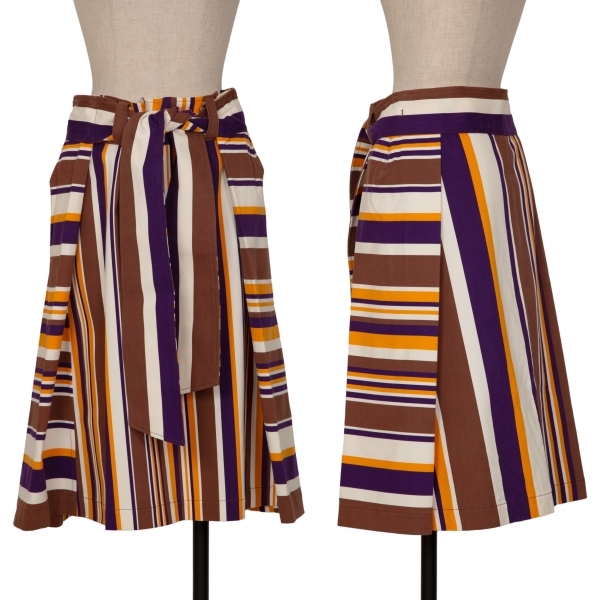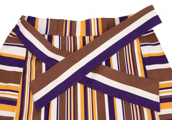 イッセイミヤケ エーポックISSEY MIYAKE A-POC コットンストライプ切替スカート 茶紫白オレンジ2 |