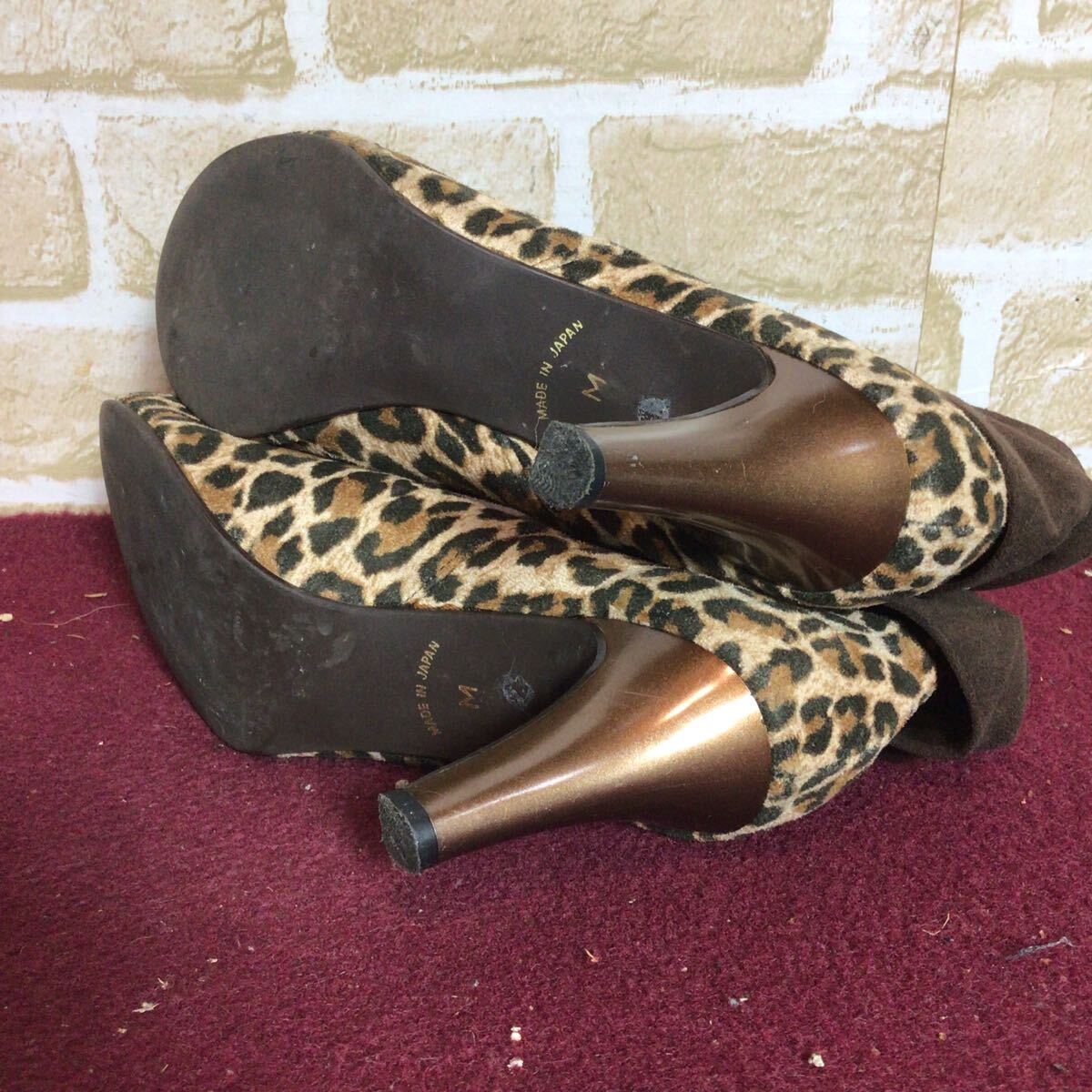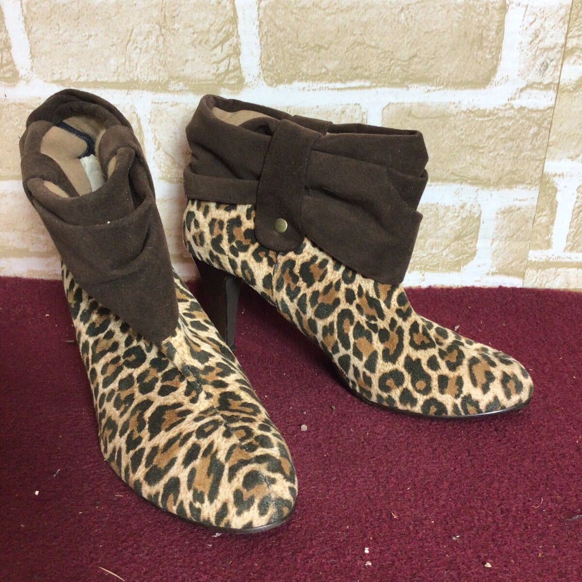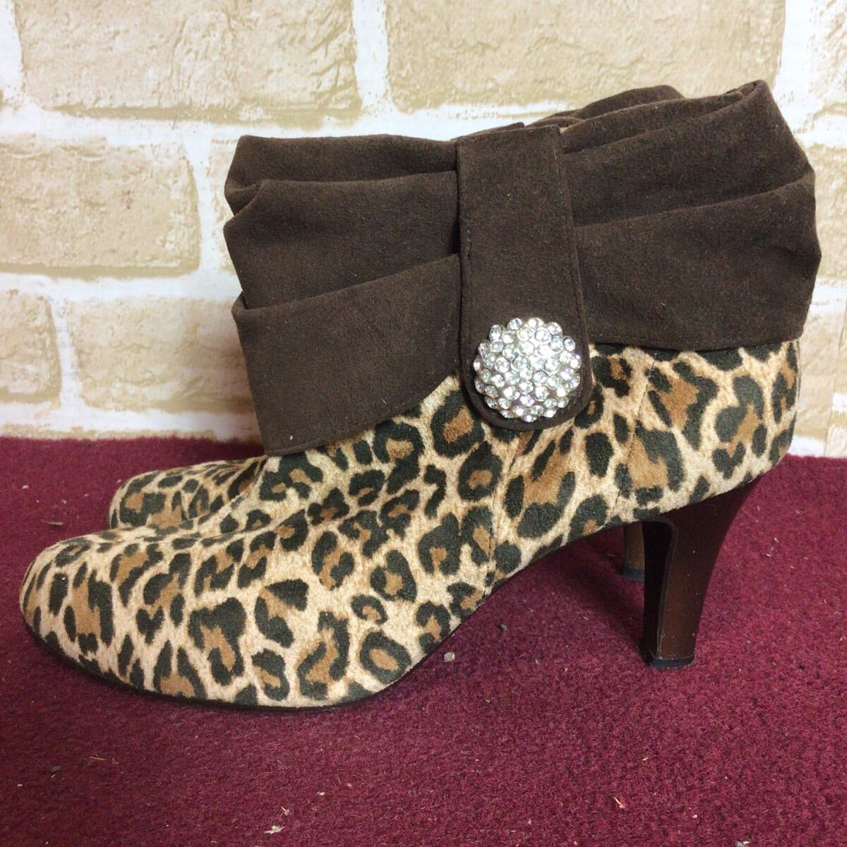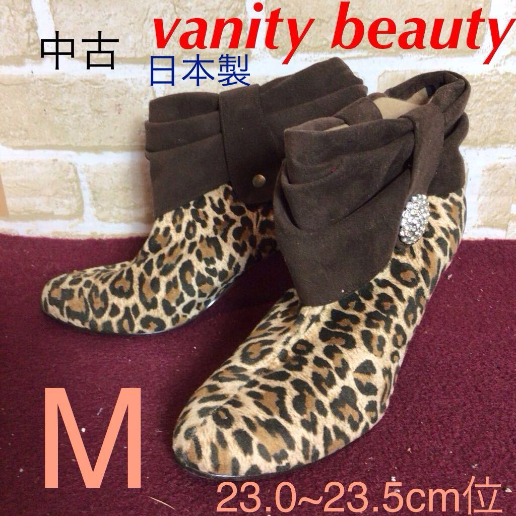 【売り切り!送料無料!】A-374 vanity beauty!ショートブーツ!M 23.0~23.5cm位!ブラウン!豹柄!おしゃれ!可愛い!日本製!中古!