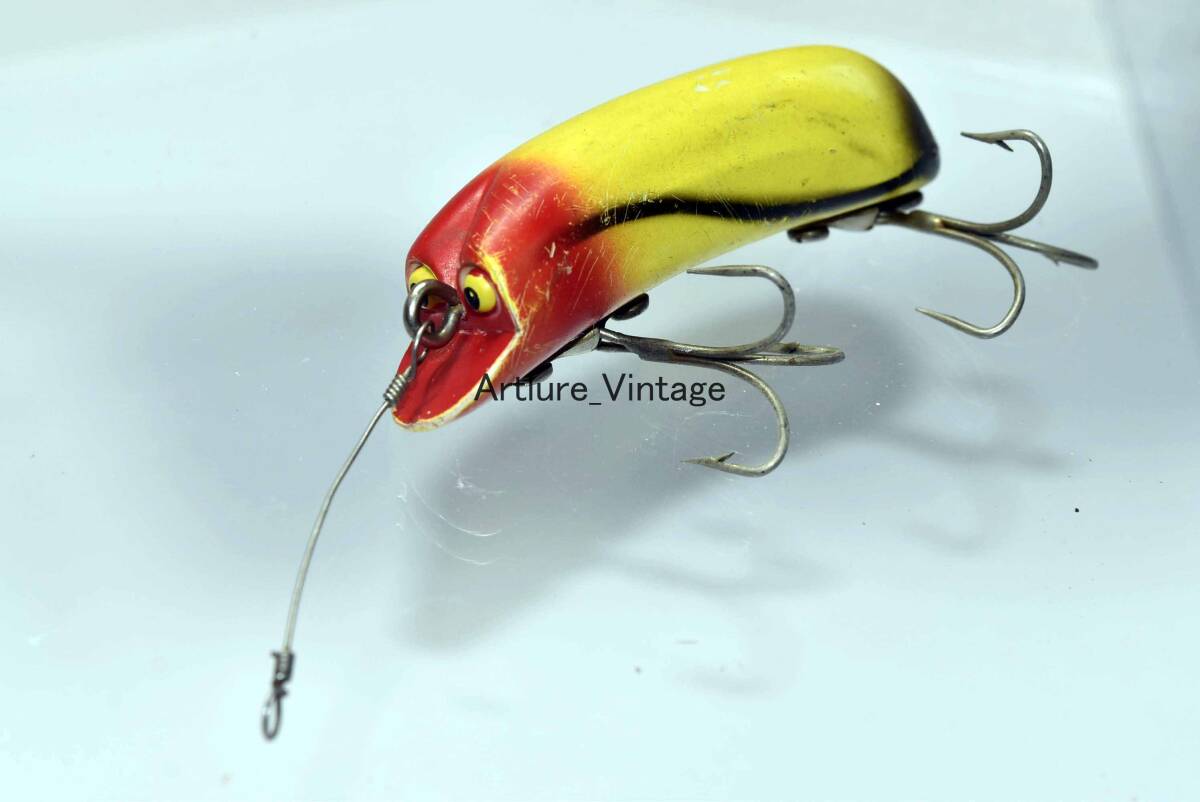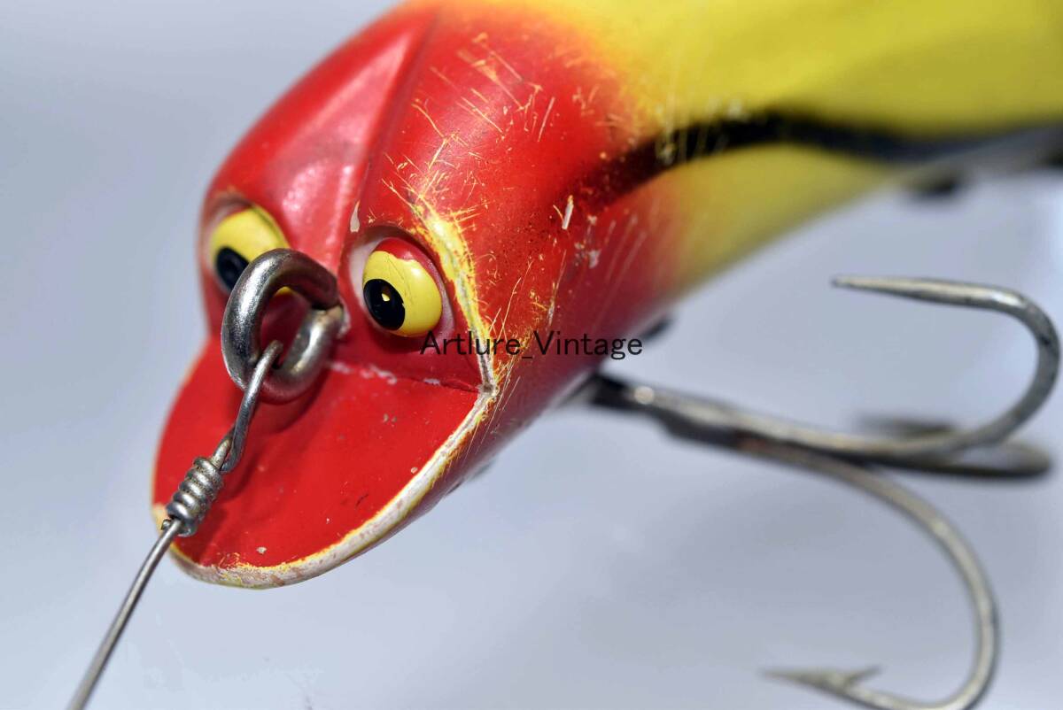 本商品は、1980年代後半にすでにオールドルアーとして入手された、歴史ある希少なヴィンテージ釣りルアーです。何十年もの間に受けたキズや塗装のはげなど、長い時間を経て自然に生じた経年変化が見られます。商品の詳細は、できるだけ写真にて表現しておりますが、見落としている部分があるかもしれません。そのため、ヴィンテージルアーに詳しい方、または古いものの風合いを理解し、それを受け入れることができる方向けの商品です。