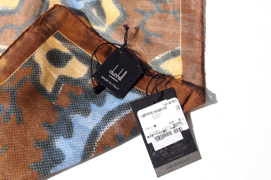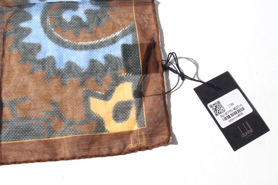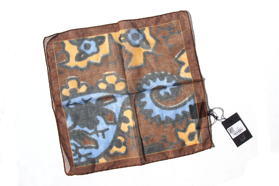 送料無料★新品|未使用|ダンヒル|dunhill|コットン×シルク|プリントポケットチーフ(ブラウン系)
