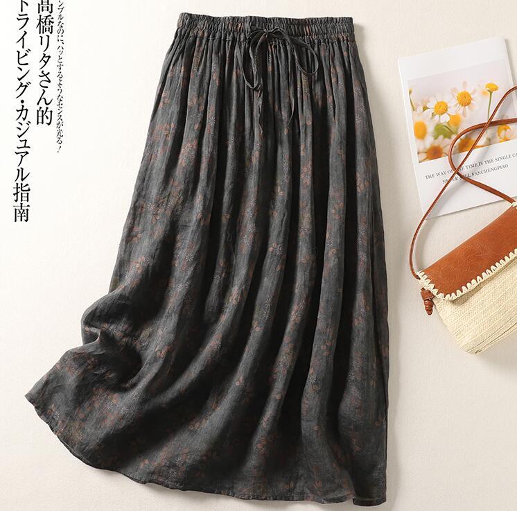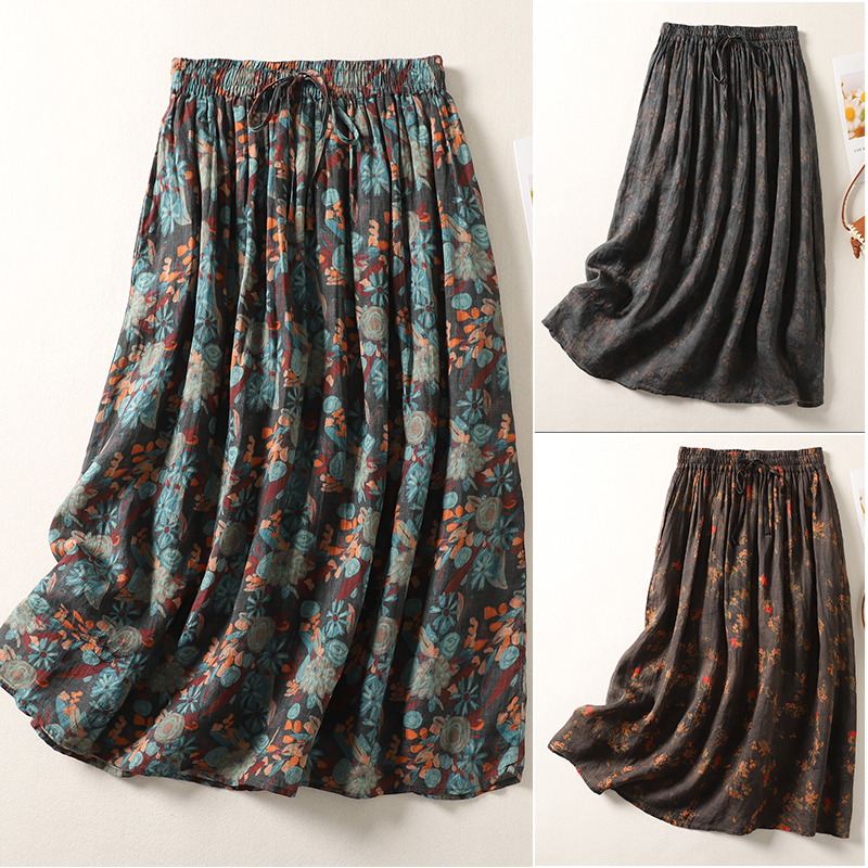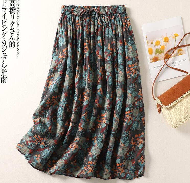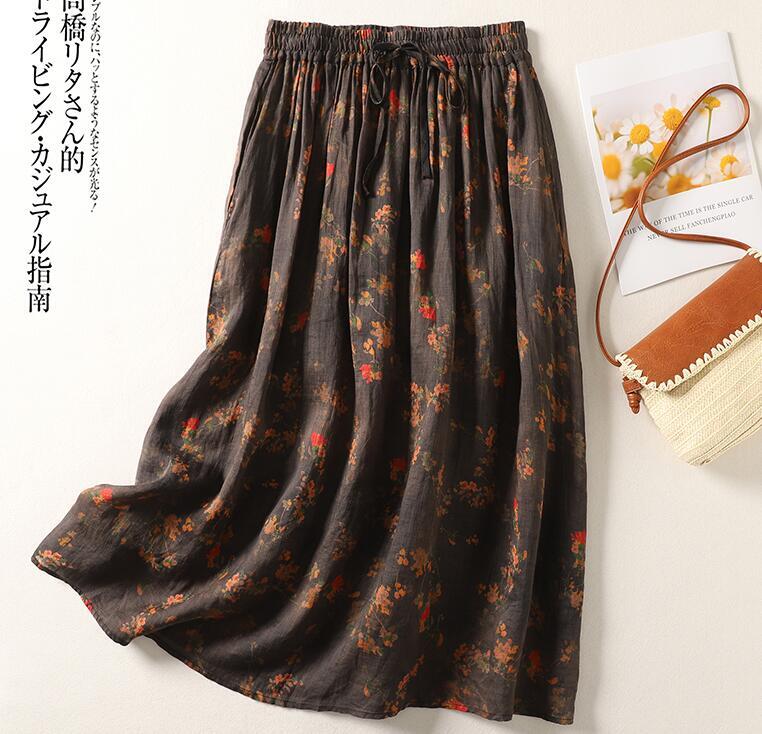 「同梱1万円送料無料」夏新作*レディース*ゆったりサイズ*カジュアル*花柄*ロングスカート*コーヒー