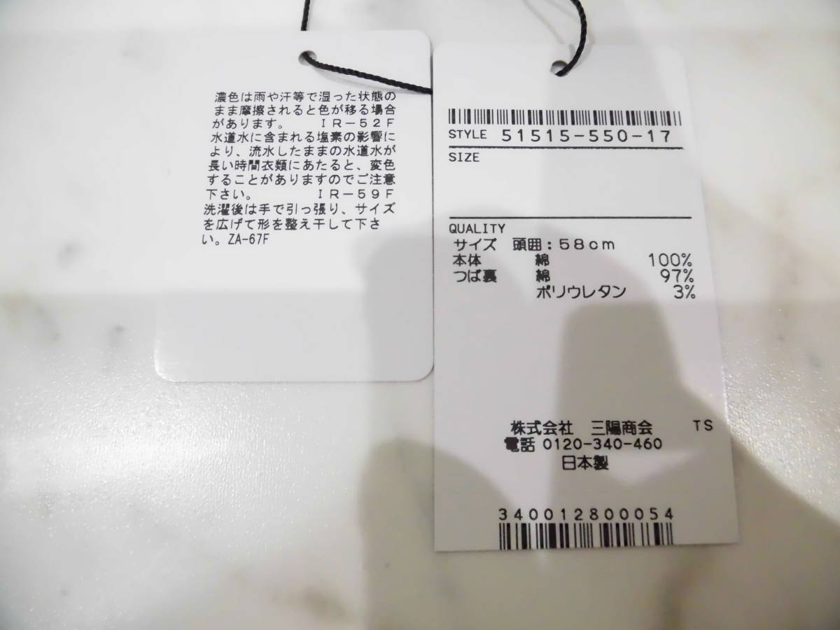 素材は 本体 綿 100% 、つば裏 綿 97% ポリウレタン 3% です。