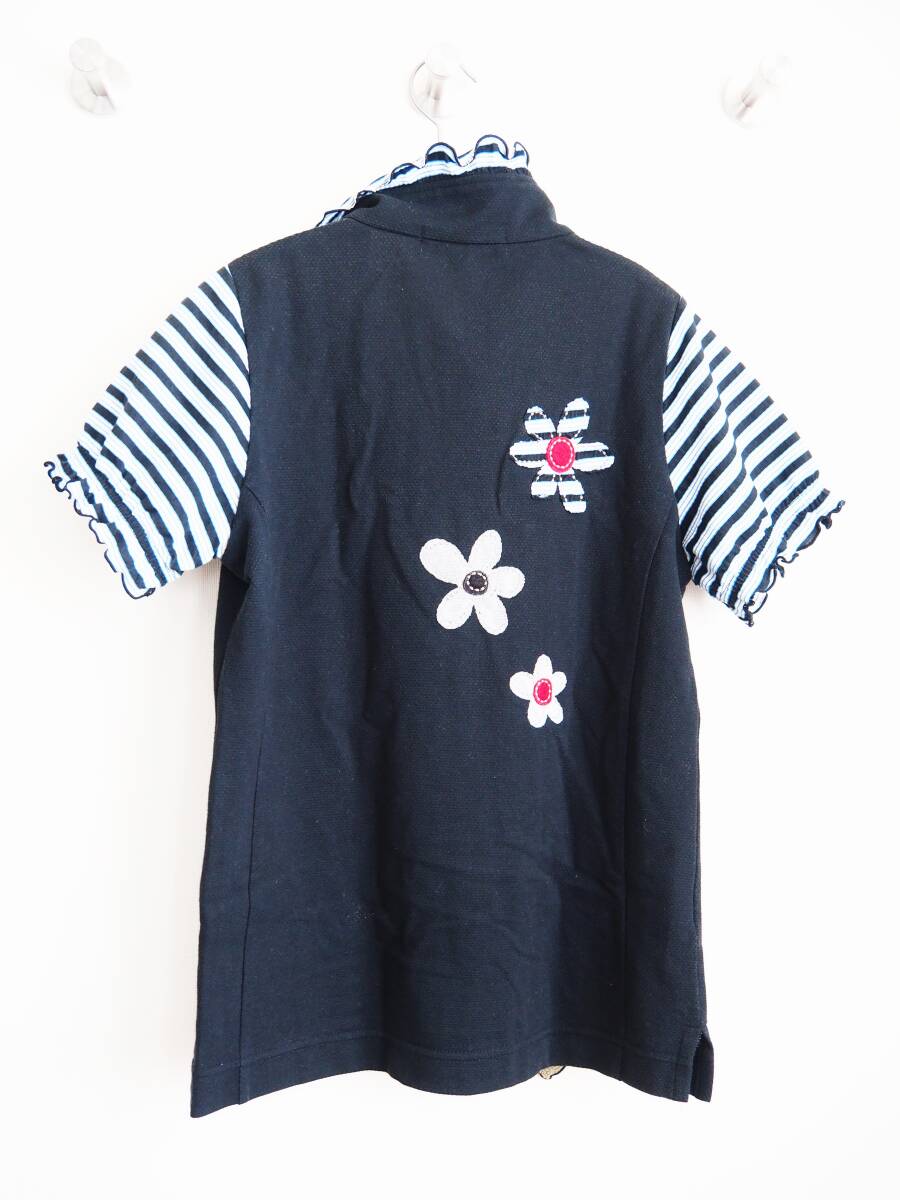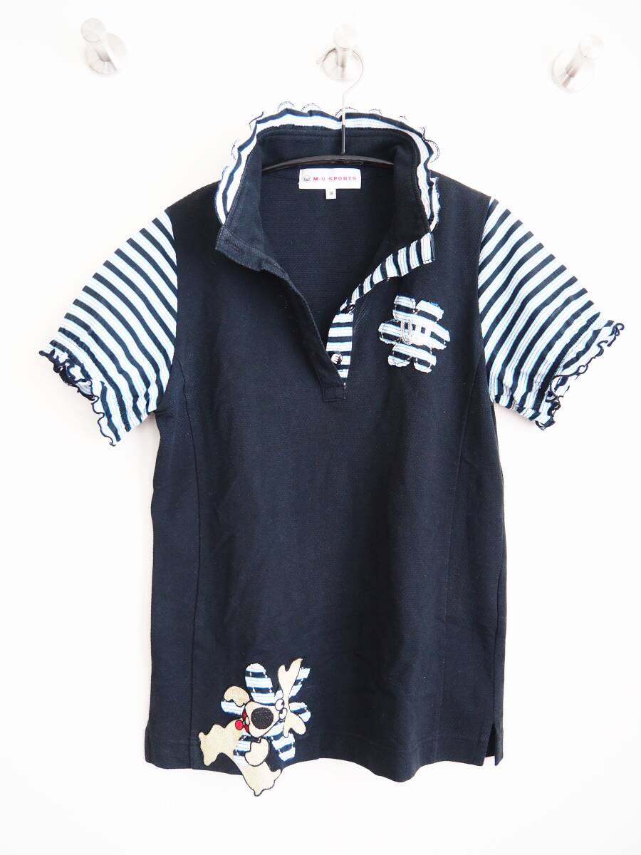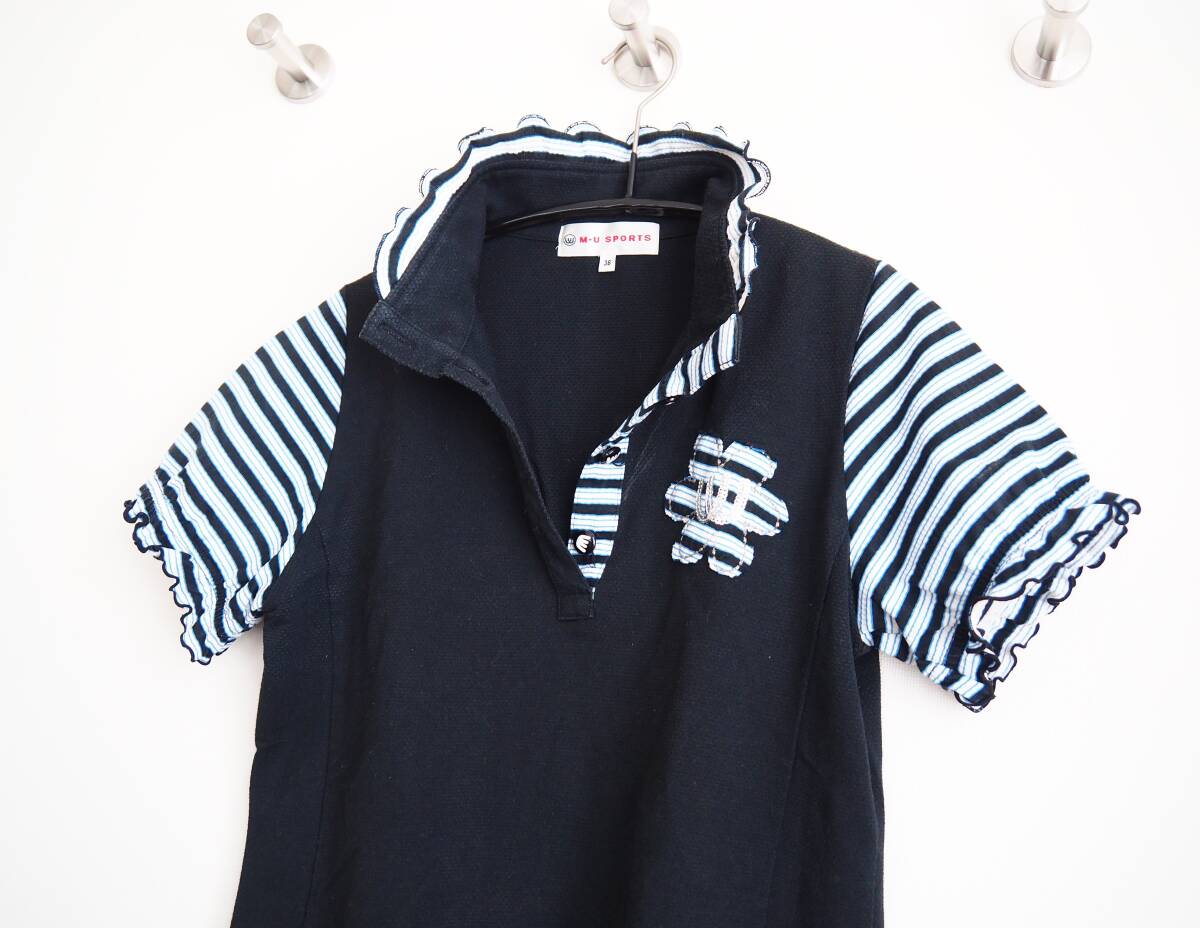 ★ミエコウエサコMIEKOUESAKO M・U SPORTS 黒地フリル襟ボーダー半袖シャツ