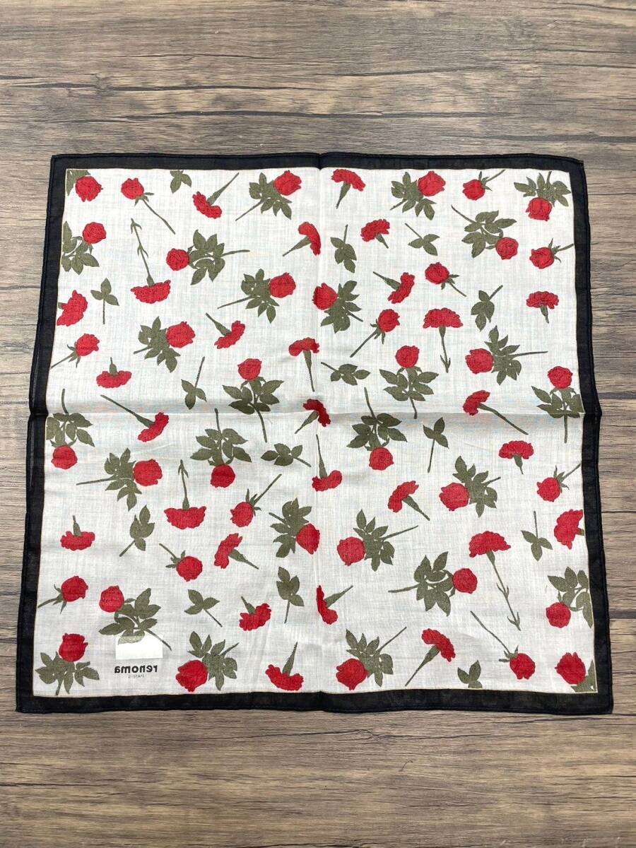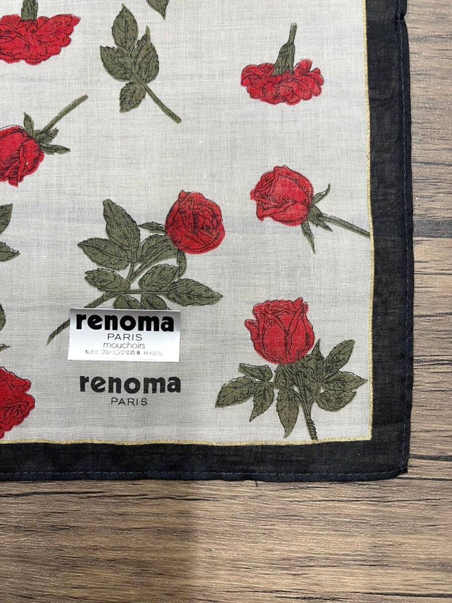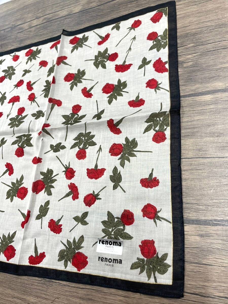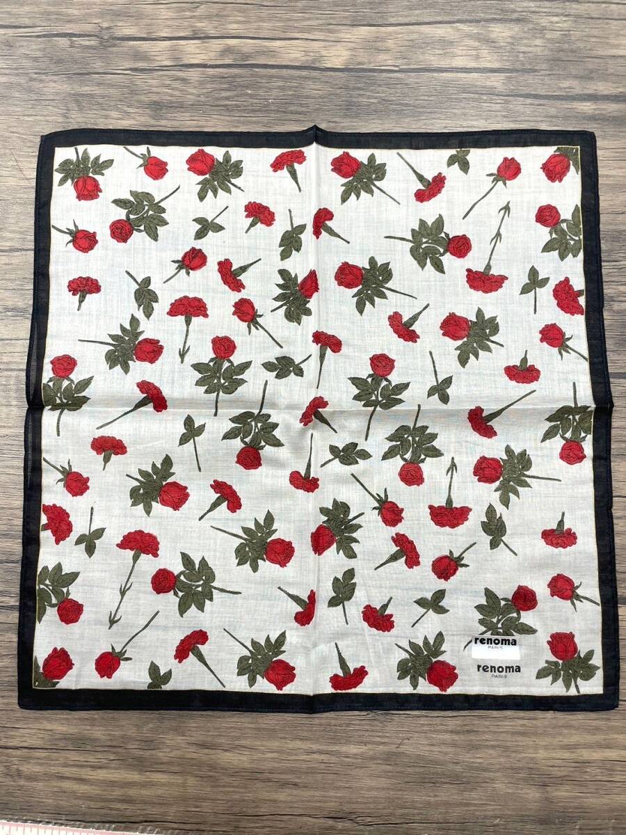 【未使用品】renoma レノマ ハンカチ バンダナ ホワイト×ブラック×レッド 花柄 バラ フラワー レディース