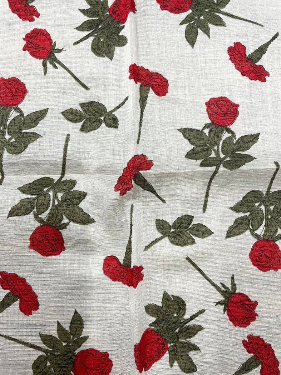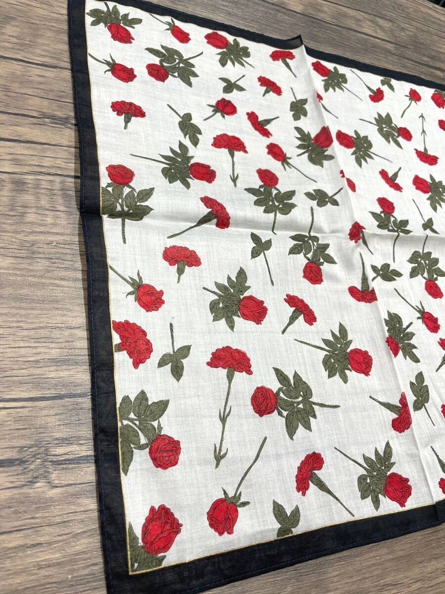 ハンカチ バンダナ ホワイト×ブラック×レッド 花柄 バラ フラワー レディース