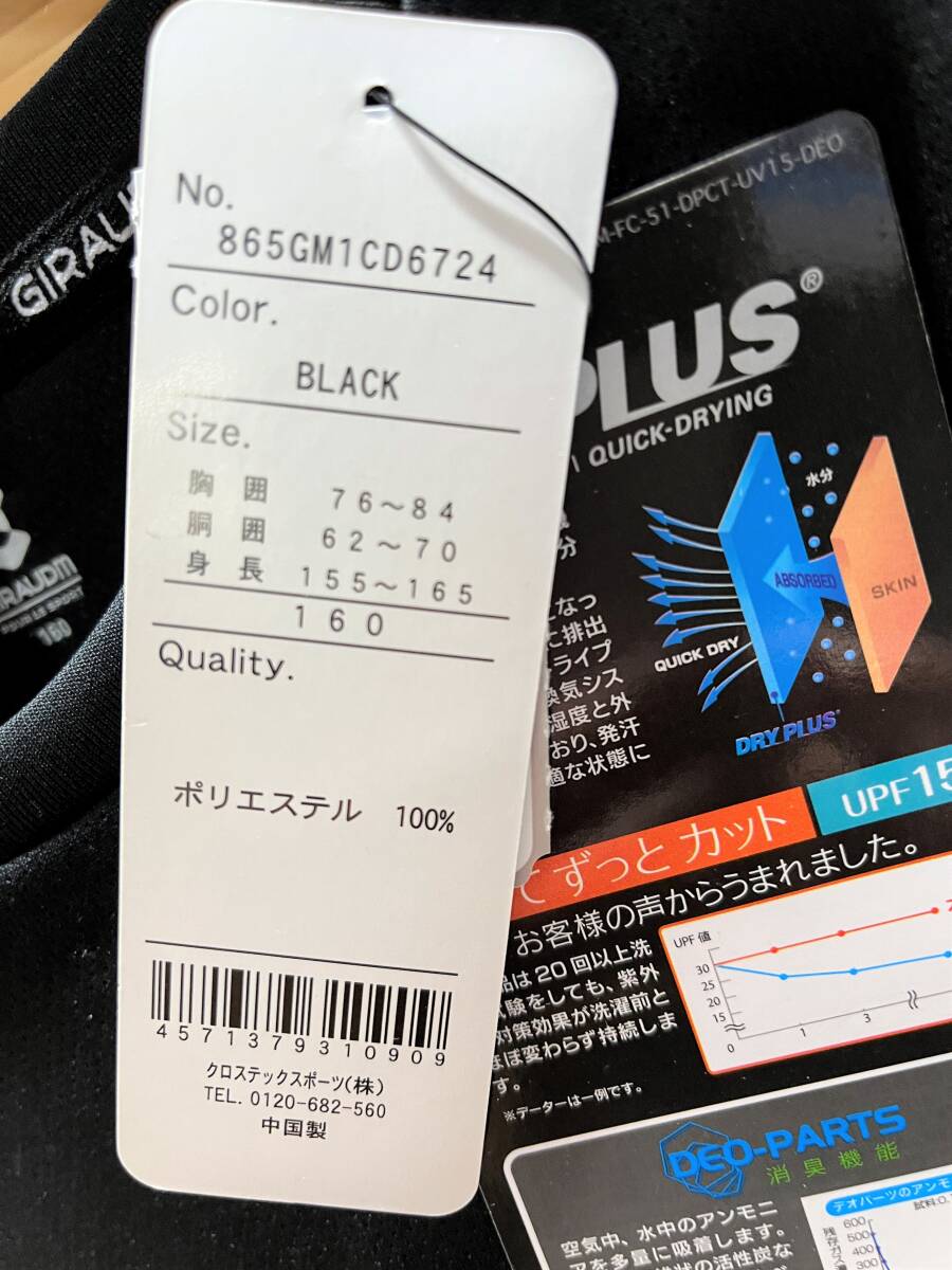 K-203★GIRAUDM★ジローム 吸汗速乾シャツ UPF15 160 ブラック 未使用保管品