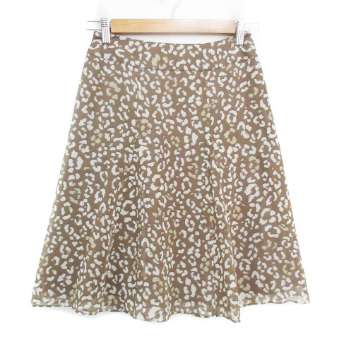 ノーリーズ sophi フレアスカート ひざ丈 ヒョウ柄 レオパード柄 マルチカラー 36 S 茶 白 ブラウン ホワイト /FF45 レディース