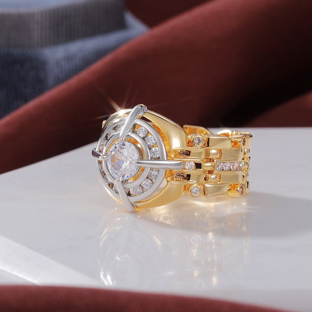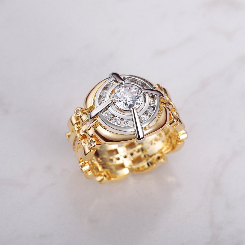B0205☆新品絶賛販売中!ダイヤモンド ゴールド 指輪 メンズ リング キラキラ 男性用 アクセサリー ダイヤ嵌める 極希少「12~20号」選択