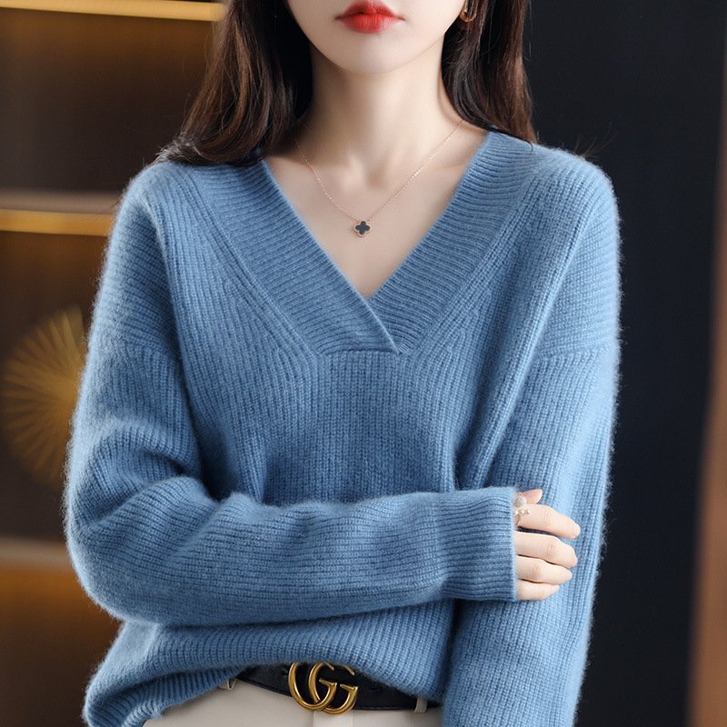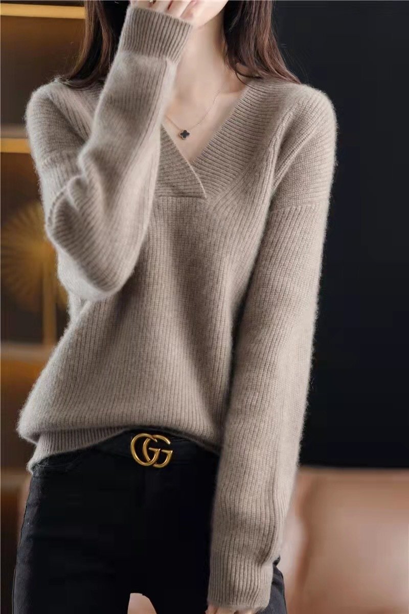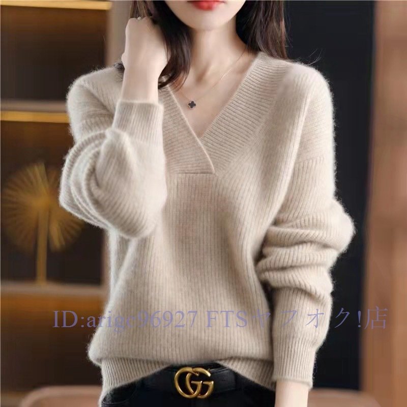 B0939☆お色選択可 カジュアル Vネック 着痩せトップス ミンクカシミヤ混 暖かい 20304050代 おしゃれニットセーター XLサイズ以上