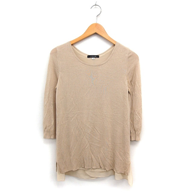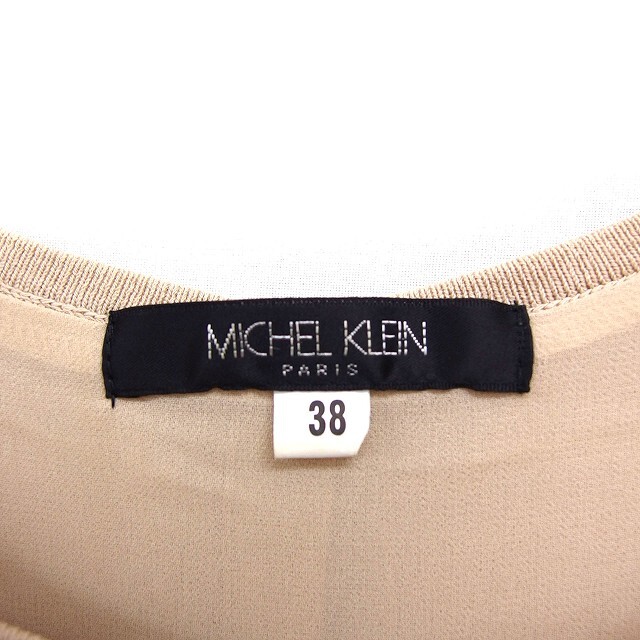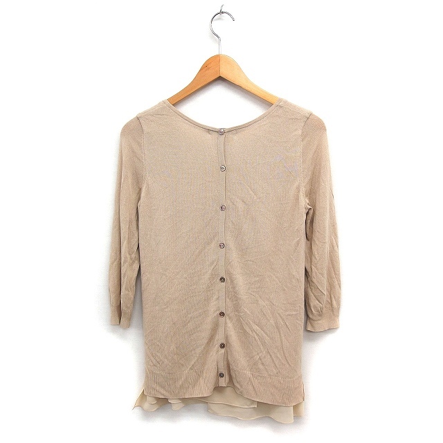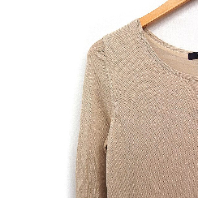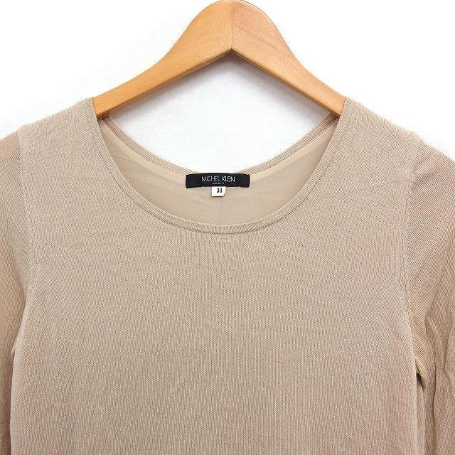 ミッシェルクラン MICHEL KLEIN 七分袖 ニット セーター Uネック シフォン 無地 38 ベージュ /FT38 レディース