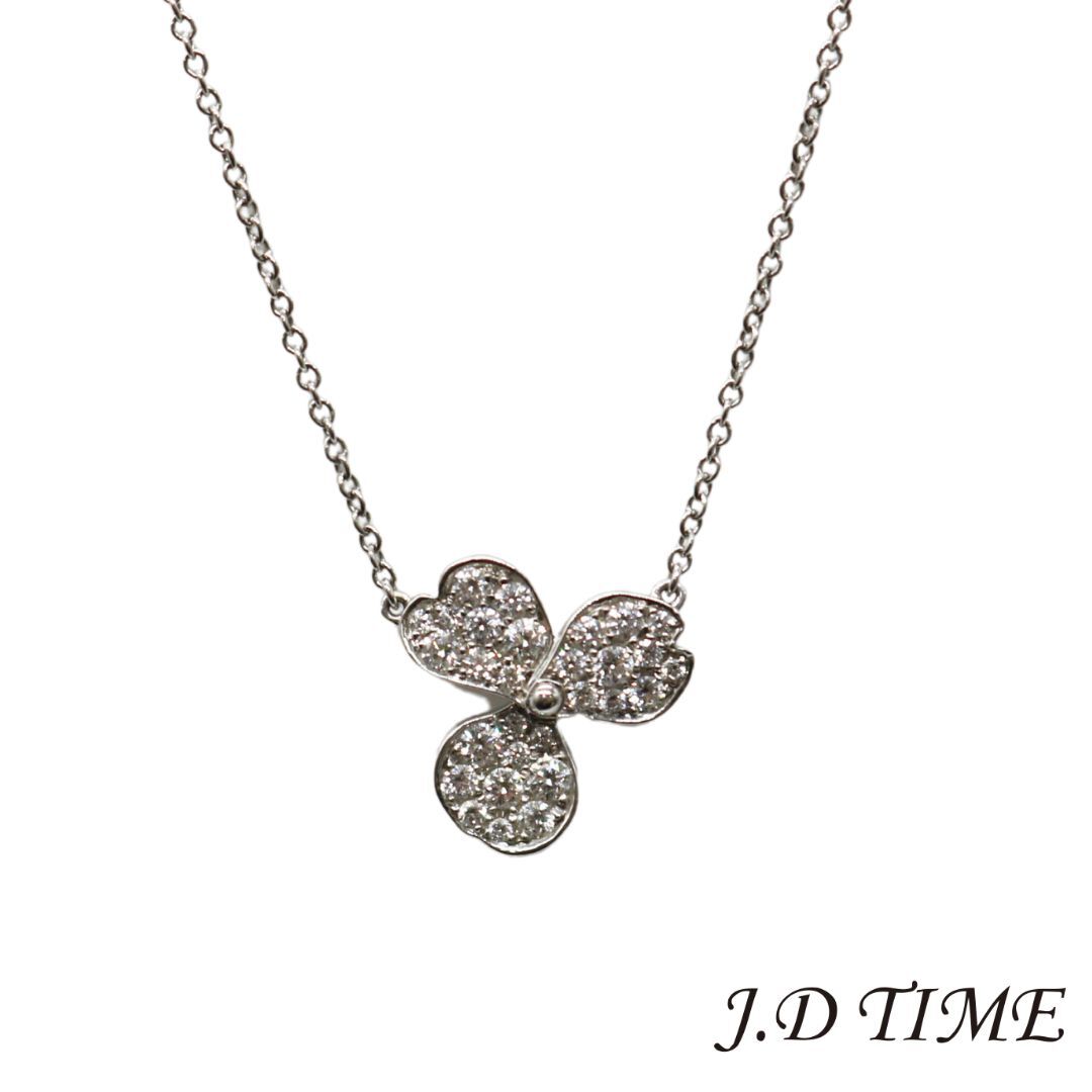紙を切って枚1枚花びらを作って仕上げたようなペーパーフラワーをイメージした、ティファニー ペーパーフラワーコレクションより、花びらにダイヤモンドがあしらわれたネックレスです。