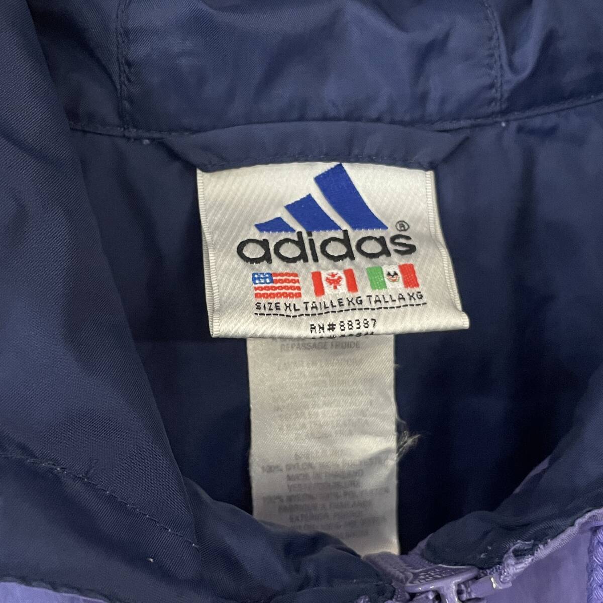 ビンテージ 90s アディダス 刺繍  アノラックパーカー ナイロン デザイン ジャケット ブルゾン 240605