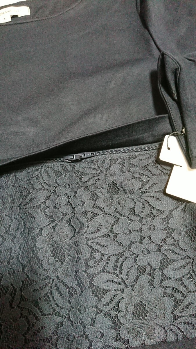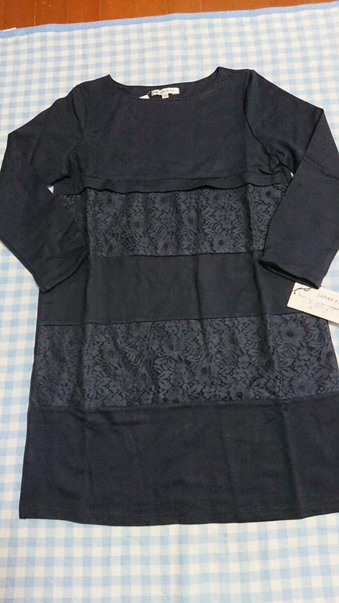 〇441☆未使用・保管品☆授乳服☆日本製生地使用 レース切替ストレッチポンチワンピ 紺L②
