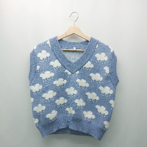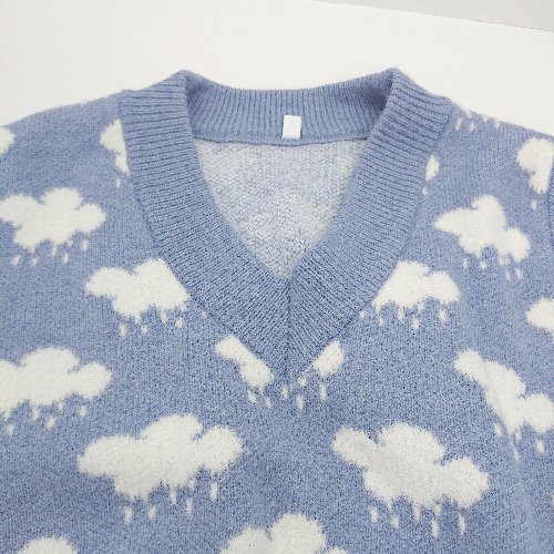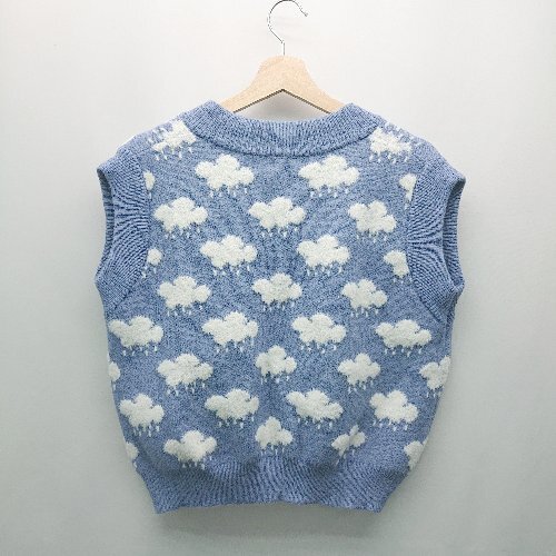 ◇ SHEIN シーイン もこもこ 雲柄 鮮やか きれいめ カジュアル かわいい ニット サイズM ブルー レディース E