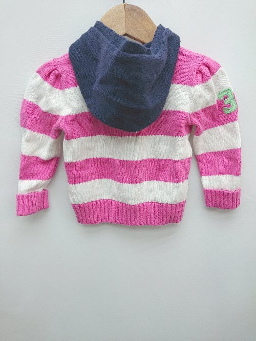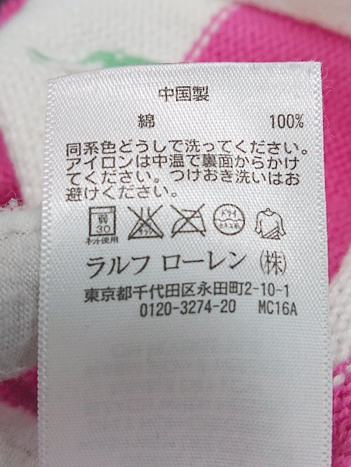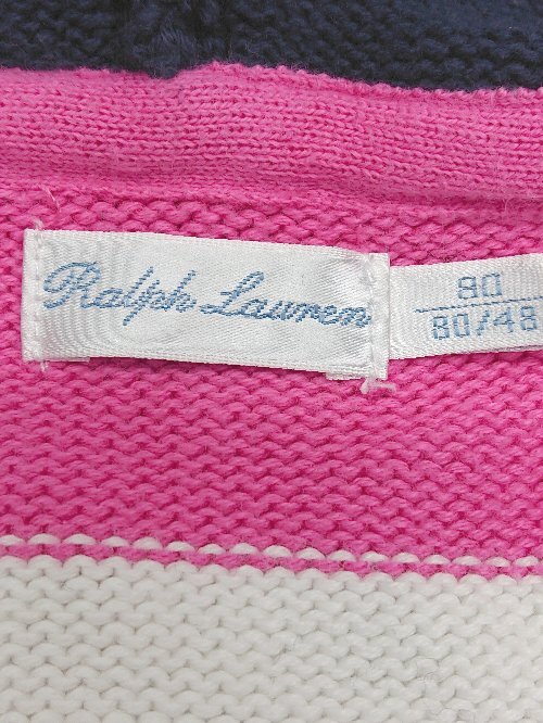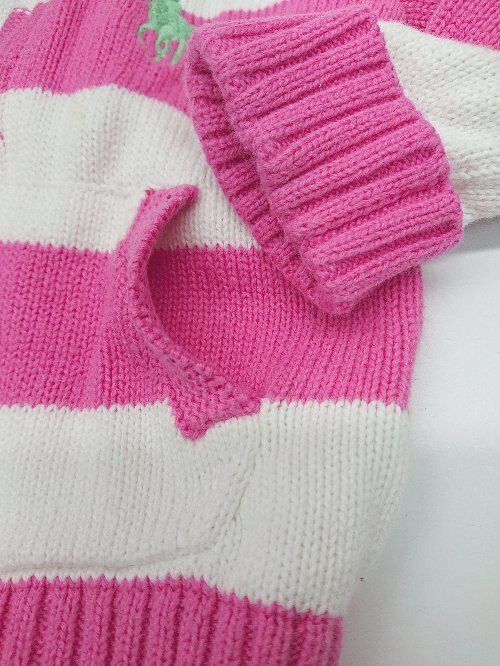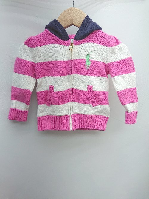 ◇ RALPH LAUREN ビッグポニー ボーダー キッズ 長袖 ニット パーカー サイズ80 80/48 ピンク ホワイト レディース P