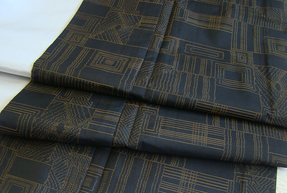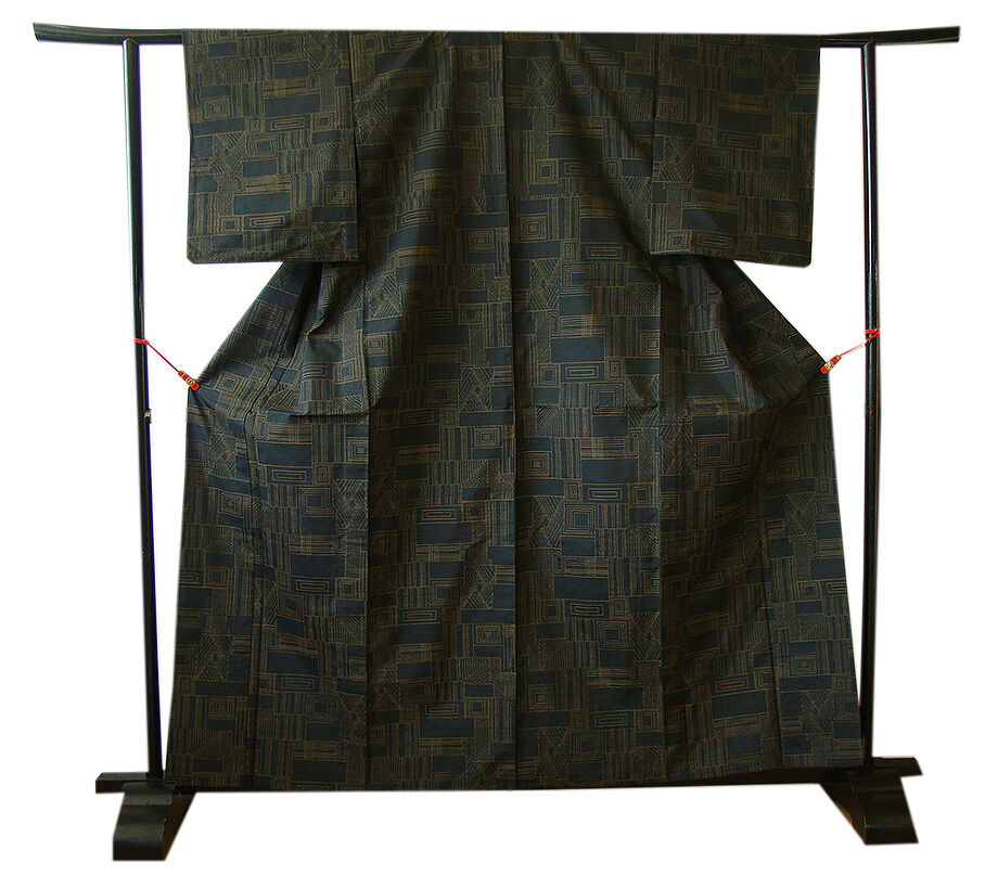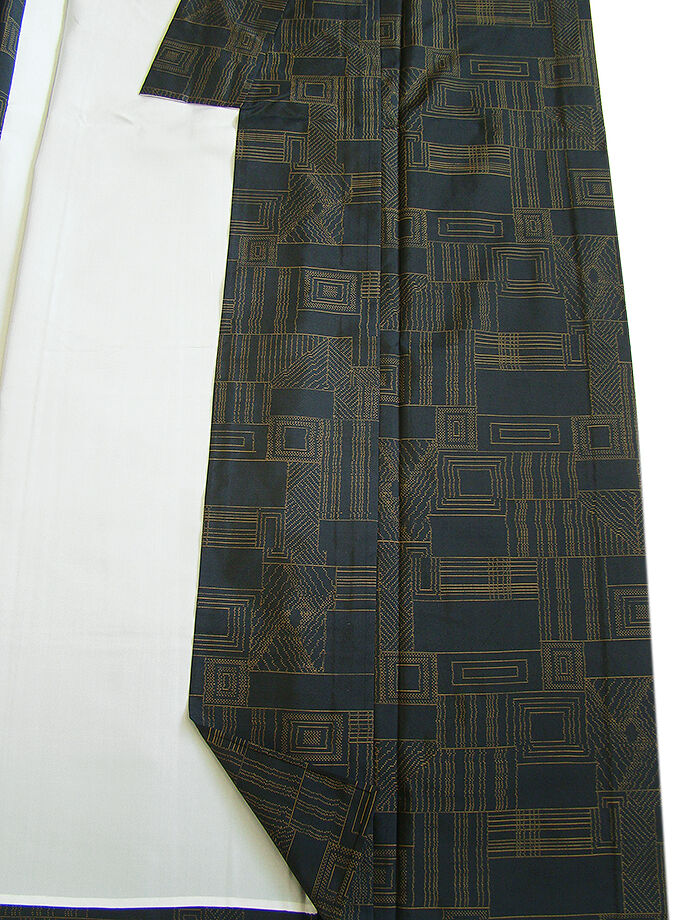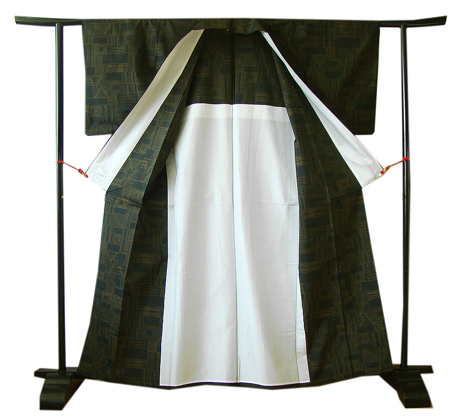 | 商品説明 | こちらのお品は「単衣」ですので、5月、6月、9月にお召頂ければと思います。 着物には、大きく分けて「袷(あわせ)の着物」と「単衣(ひとえ)の着物」と「夏着物」があります。 反物(表地)を着物に仕立てるときに、裏地類をつけるものを袷の着物、 つけないものを単衣の着物と呼び、胴裏や八掛といった裏地がつかない一枚ものの着物です。 また裏地がないため、座る時などにヒップのラインが目立たないよう、 居敷当て(いしきあて)の生地をつけることもあります。 正絹の居敷当て2巾付いております。 とてもしなやかでさらりとした手触り良い、独特のハリやシャリ感ある単衣の本場大島紬、 黒色地に渋いからし色の幾何学柄の織柄、 また、残念ながら証紙・残布はありませんが手触りや織等から本場大島紬と思われます。 |