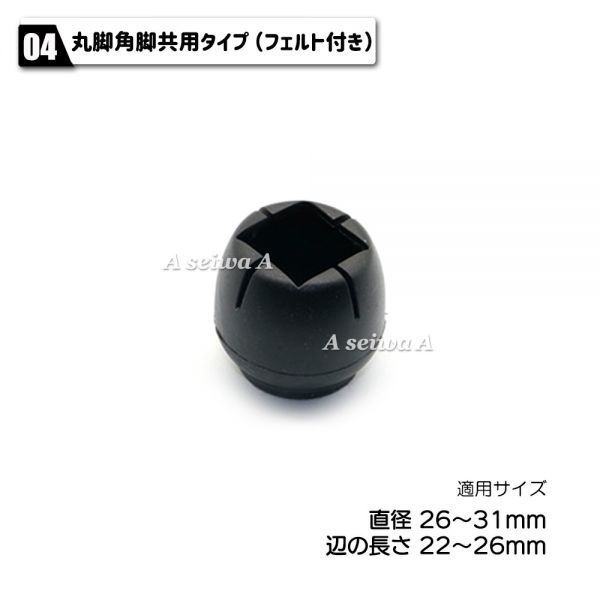 椅子 脚 カバー キャップ シリコン フローリング傷付防止 ブラック/フェルト付き 共用(NO.4 Sサイズ ) 8個セット