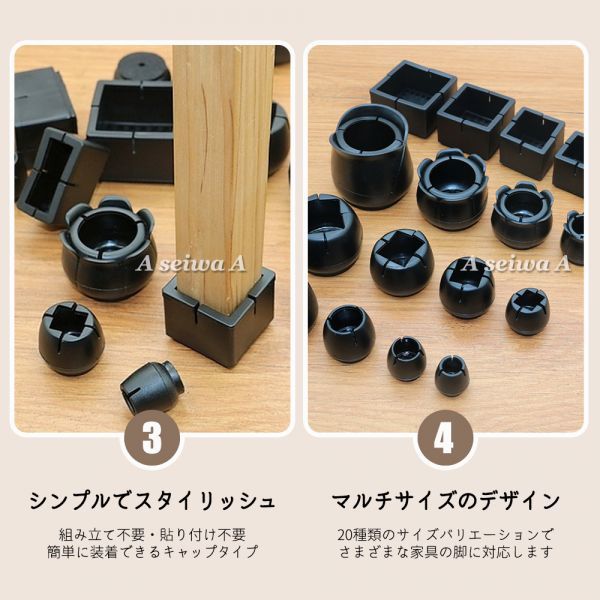 ・20種類のサイズバリエーションで、さまざまな家具の脚に対応します。