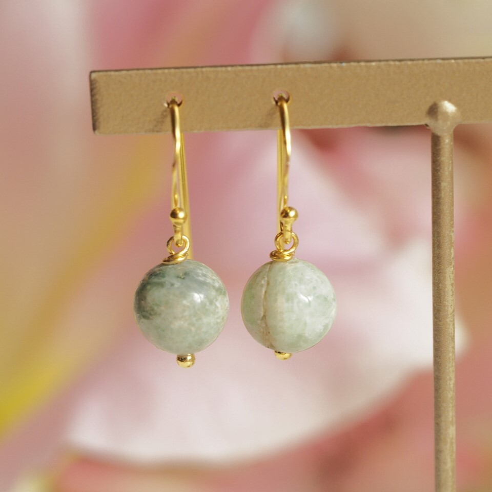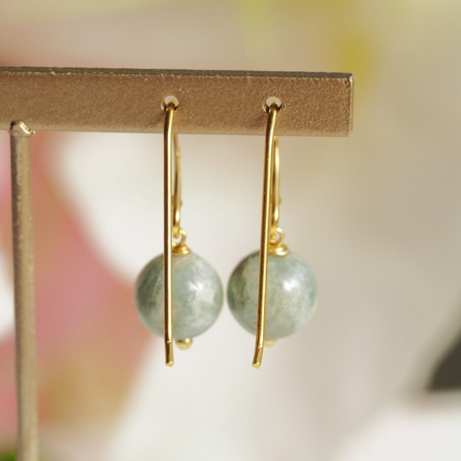こちらは丸石の糸魚川翡翠を使用してシンプルなピアスを仕上げております。