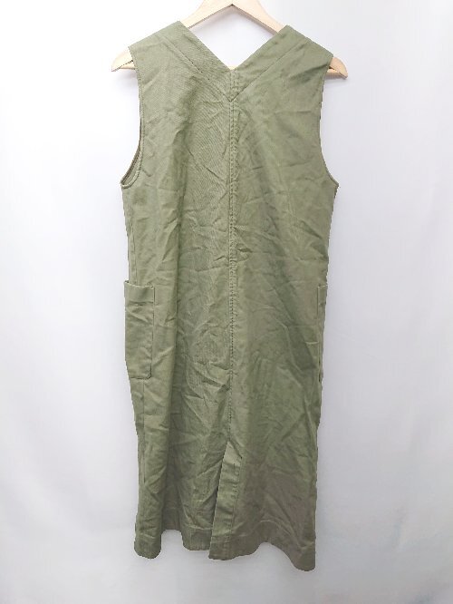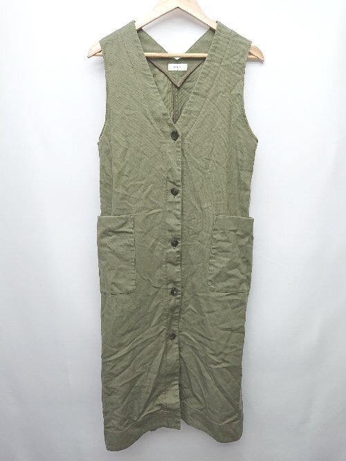 ◇ SHIPS any シップス エニィ Vネック フロントボタン カジュアル 膝下丈 ワンピース サイズF カーキ レディース P