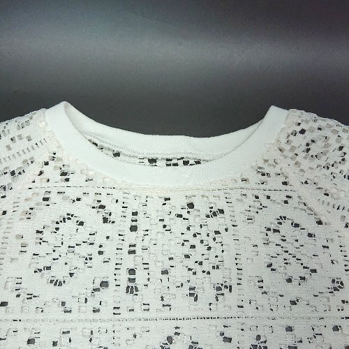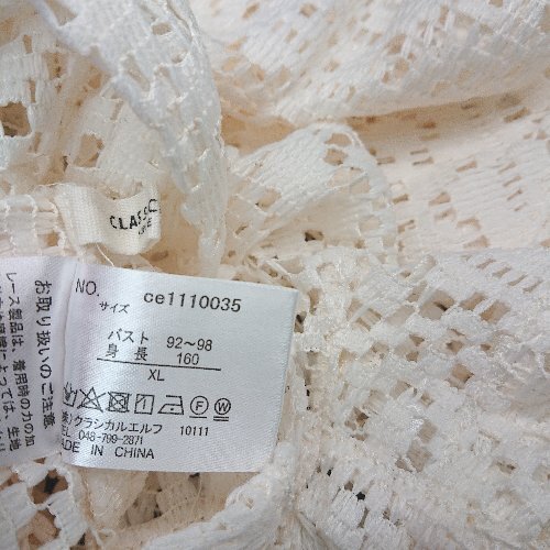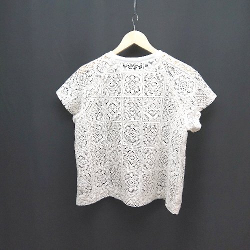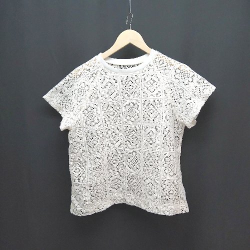 ◇ classicalelf クラシカルエルフ クルーネック 薄手 透け感 格子模様 半袖 カットソー サイズXL ホワイト レディース E