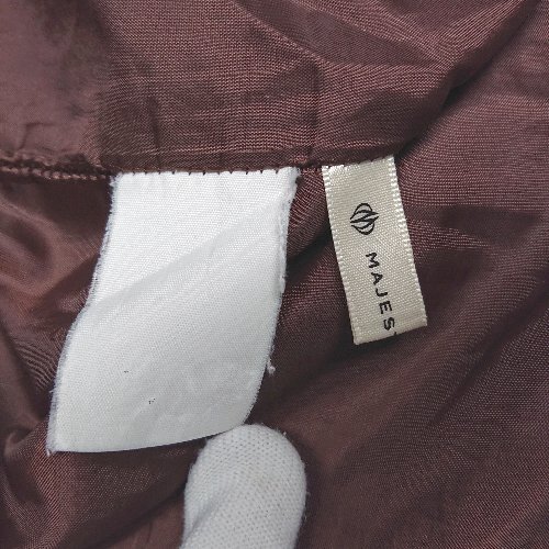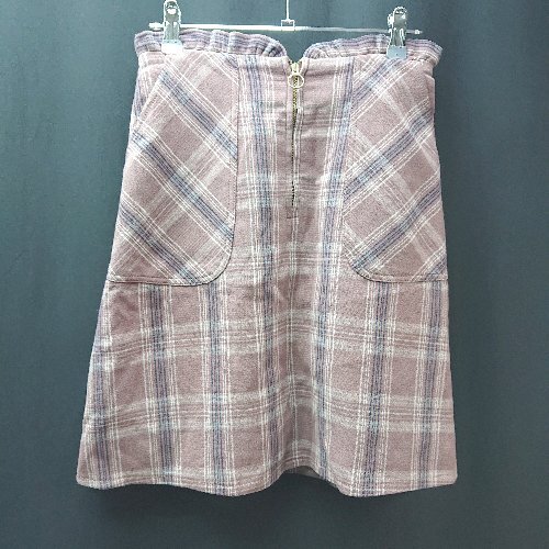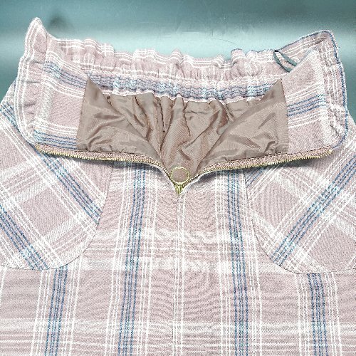 ◇ majesticlegon ジップフライ ギャザー フリル チェック ガーリー ひざ丈 フレア スカート 表記なし レッド レディース E