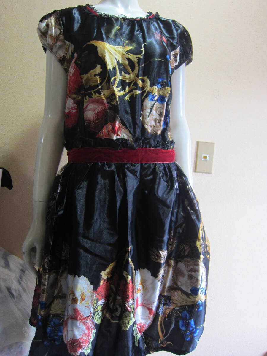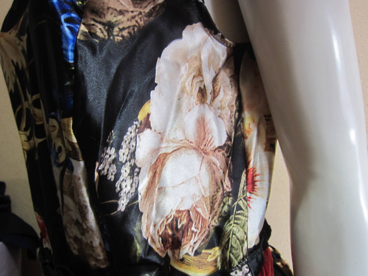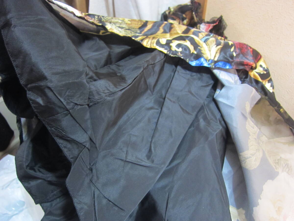 Color(色):画像参照 Size(表記サイズ):画像の表示参照 肩幅cm、身幅50cm、着丈87cm、袖丈cm (平置きで計測できる項目のみ記載) Material(素材):画像の表示参照 condition(状態):着用感多少、問題なくお使いいただけます。 A note(備考):背面ジップあり、サテン調生地に柄、華やかです。 注)画像の白い丸はフラッシュの加減で、汚れなどではございません |