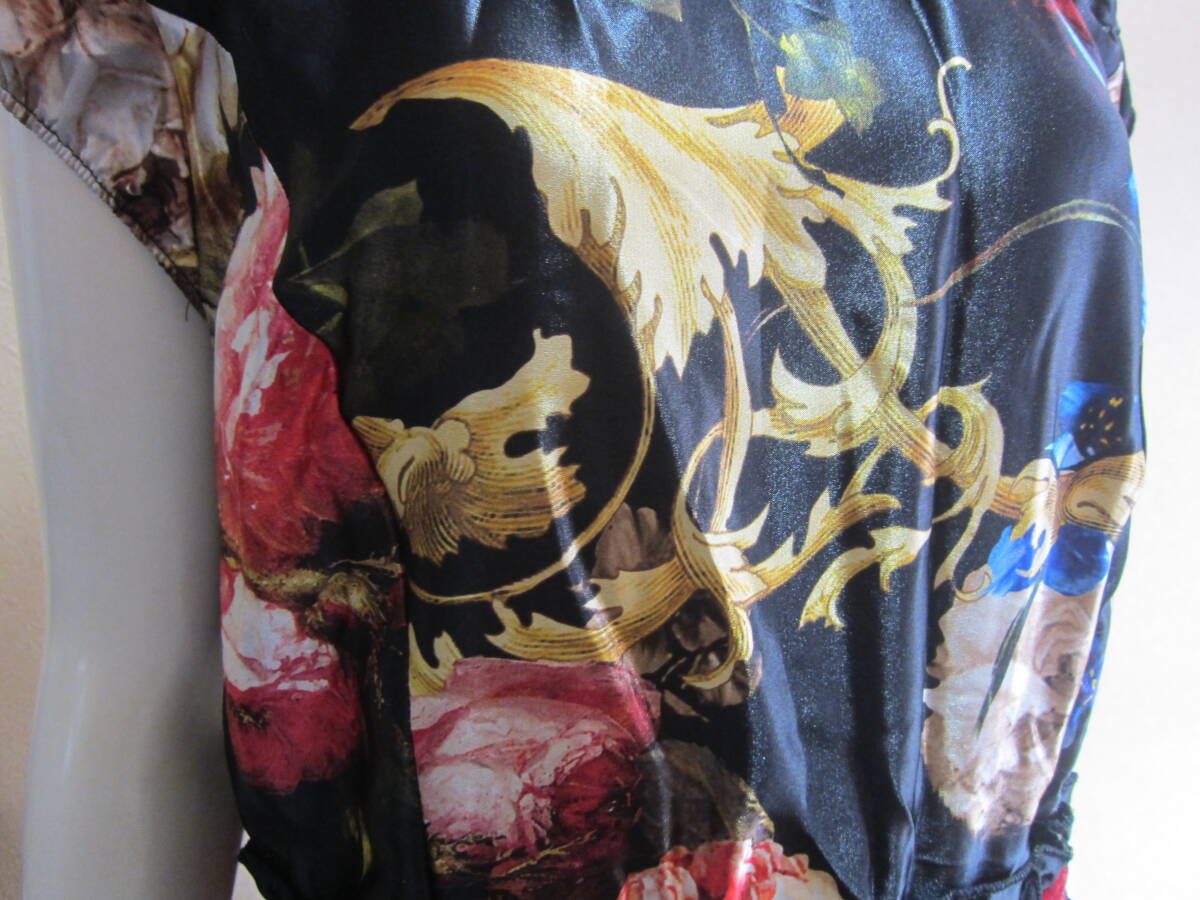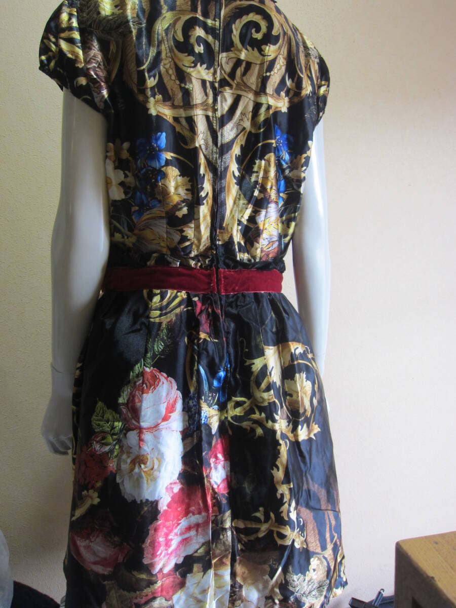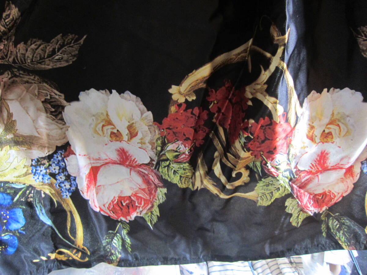 Color(色):画像参照 Size(表記サイズ):画像の表示参照 肩幅cm、身幅50cm、着丈87cm、袖丈cm (平置きで計測できる項目のみ記載) Material(素材):画像の表示参照 condition(状態):着用感多少、問題なくお使いいただけます。 A note(備考):背面ジップあり、サテン調生地に柄、華やかです。 注)画像の白い丸はフラッシュの加減で、汚れなどではございません |