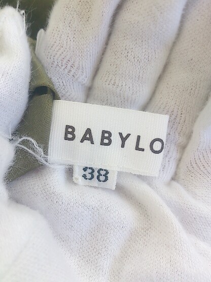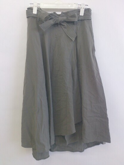 ◇ ◎ BABYLONE バビロン ウエストリボン付 膝下丈 フレア ヘム スカート サイズ38 カーキ レディース P