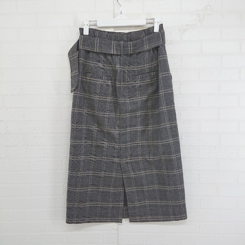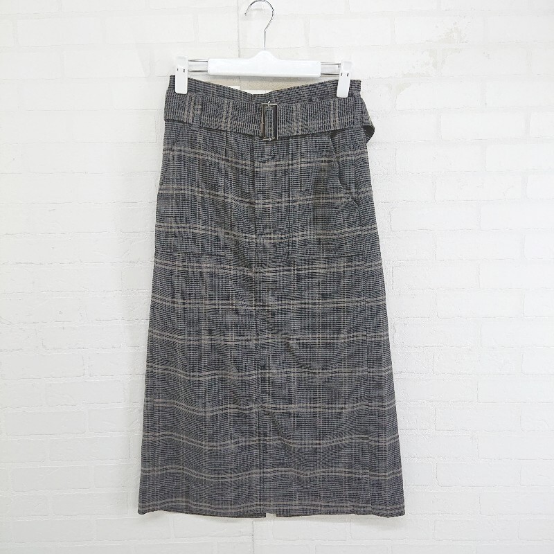 ◇ ◎ GLOBAL WORK グレンチェック スリット 膝下丈 ナロー スカート サイズM グレー ブラック系 レディース E