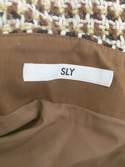◇ SLY スライ メランジ調 ミニ タイト ナロー スカート サイズ2 アイボリー ブラウン マルチ レディース E