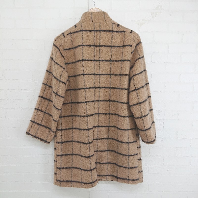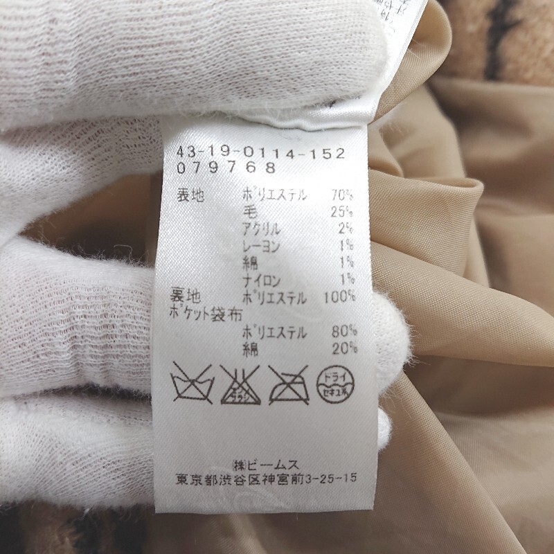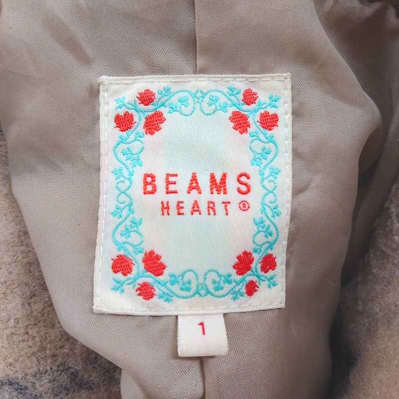 ◇ BEAMS HEART ビームスハート ウール混 チェック 長袖 コート サイズ1 ライトブラウン ブラック系 レディース E